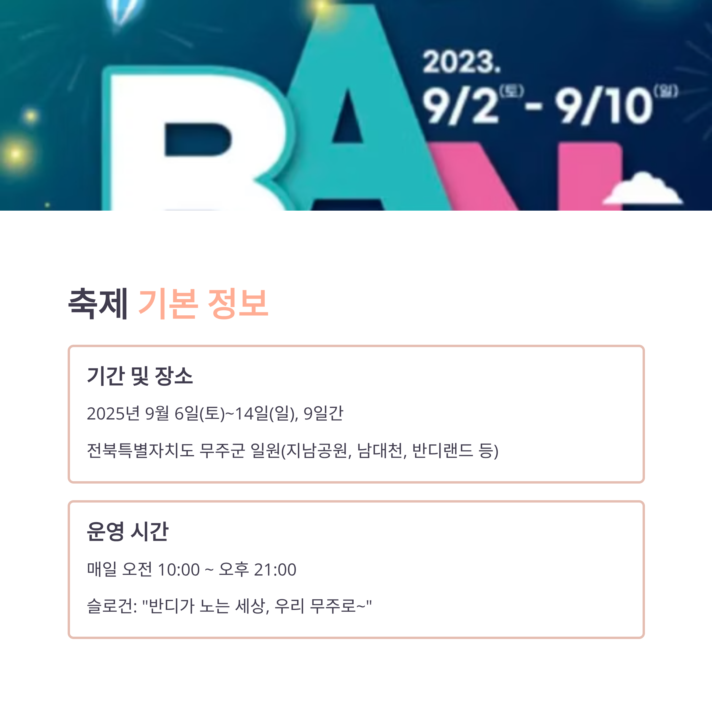 장소: 전북특별자치도 무주군 (제남공원, 남대천, 반디랜드 등)