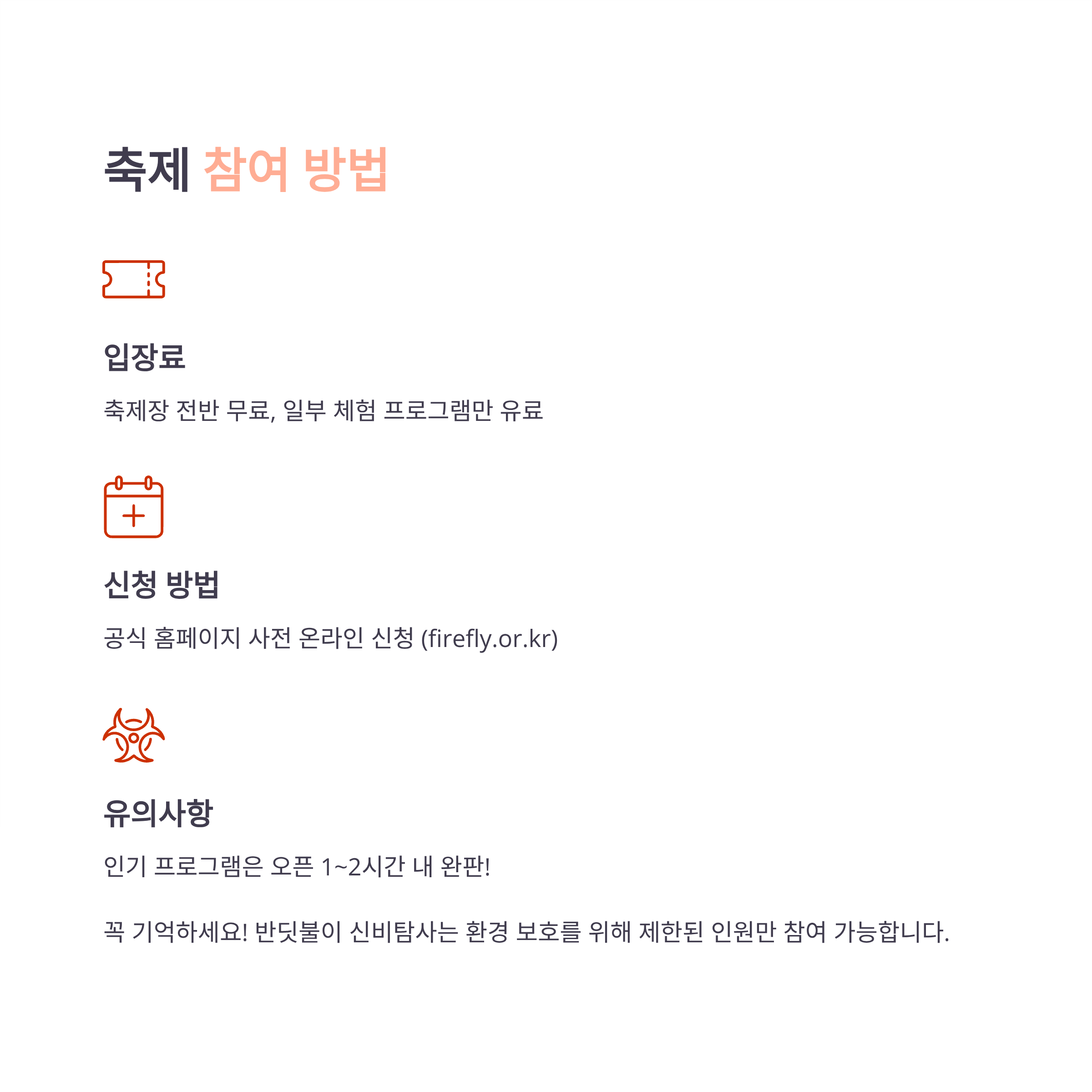 예약 방법: 무주반딧불축제 공식 홈페이지 (https://www.firefly.or.kr) 통해 사전예약