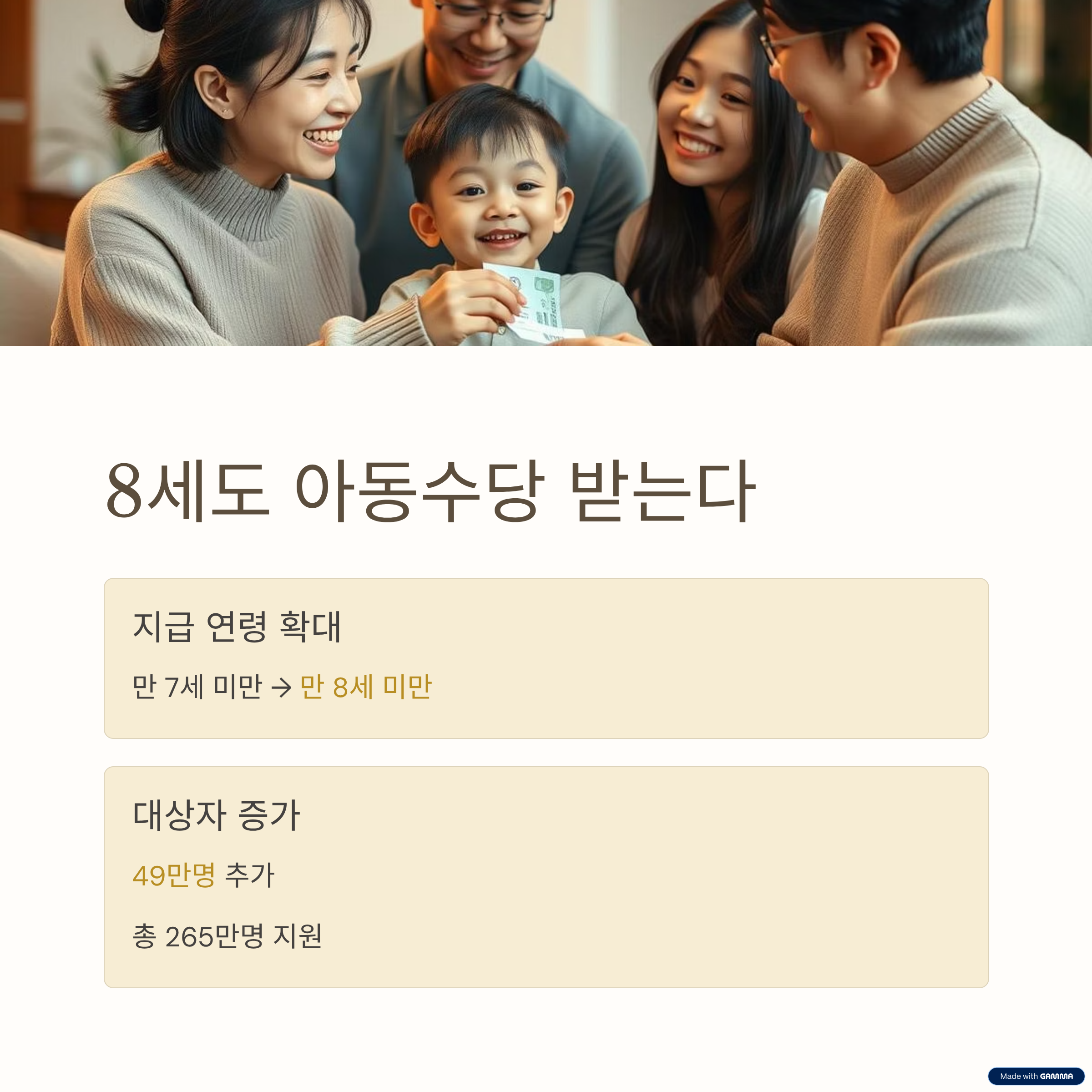 - 대상 확대: 약 49~50만 명 추가 → 총 265만 명 아동 지원