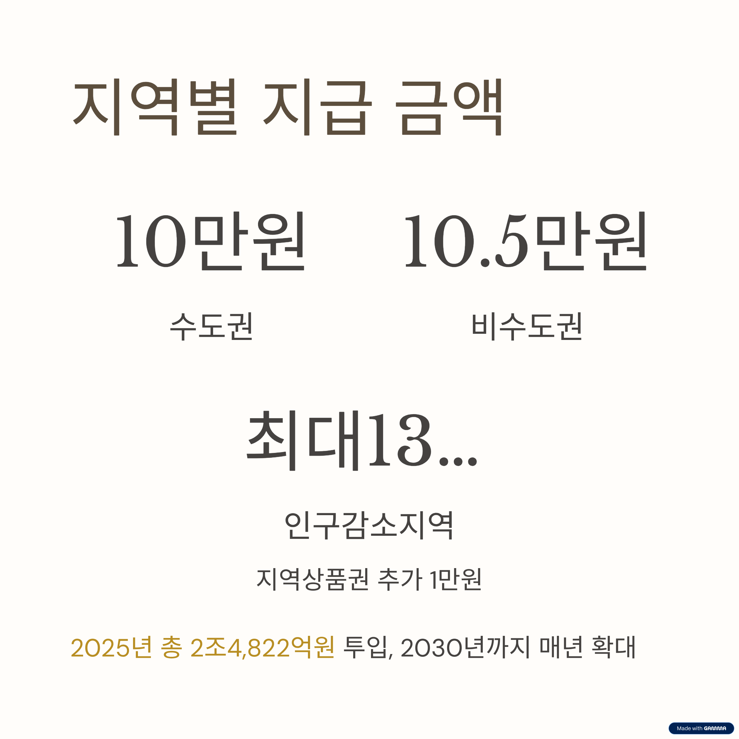 - 인구감소지역: 월 11~12만 원 (지역상품권 수령 시 +1만 원 추가)