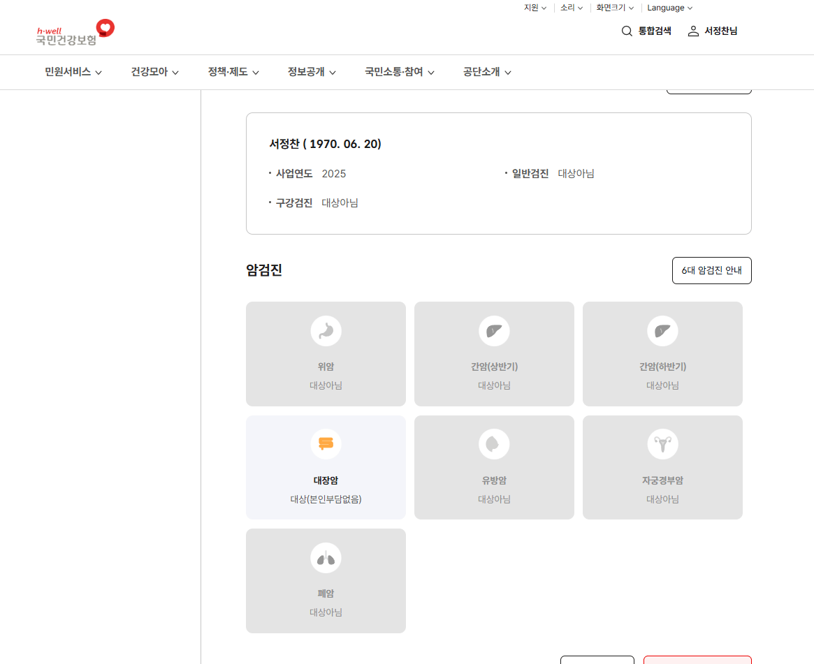 - 대상자 여부와 검진 항목 확인