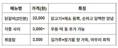 - 닭갈비 1인분 + 닭내장 1인분 → 추천 조합