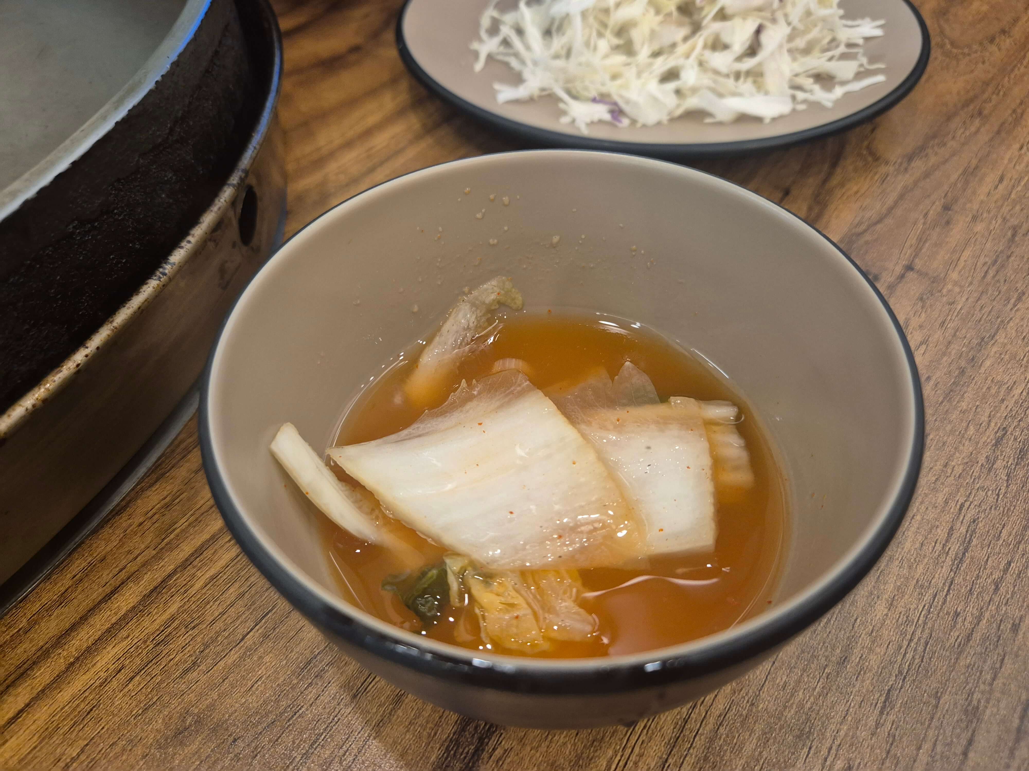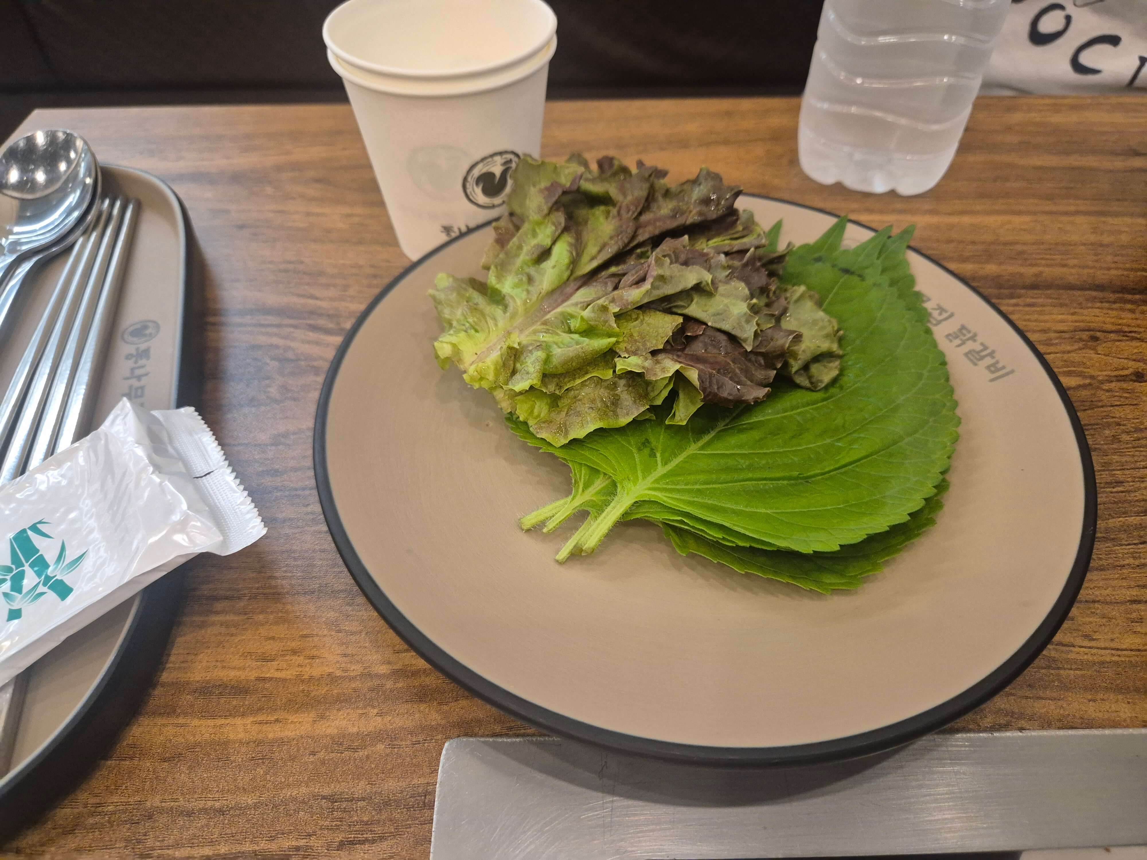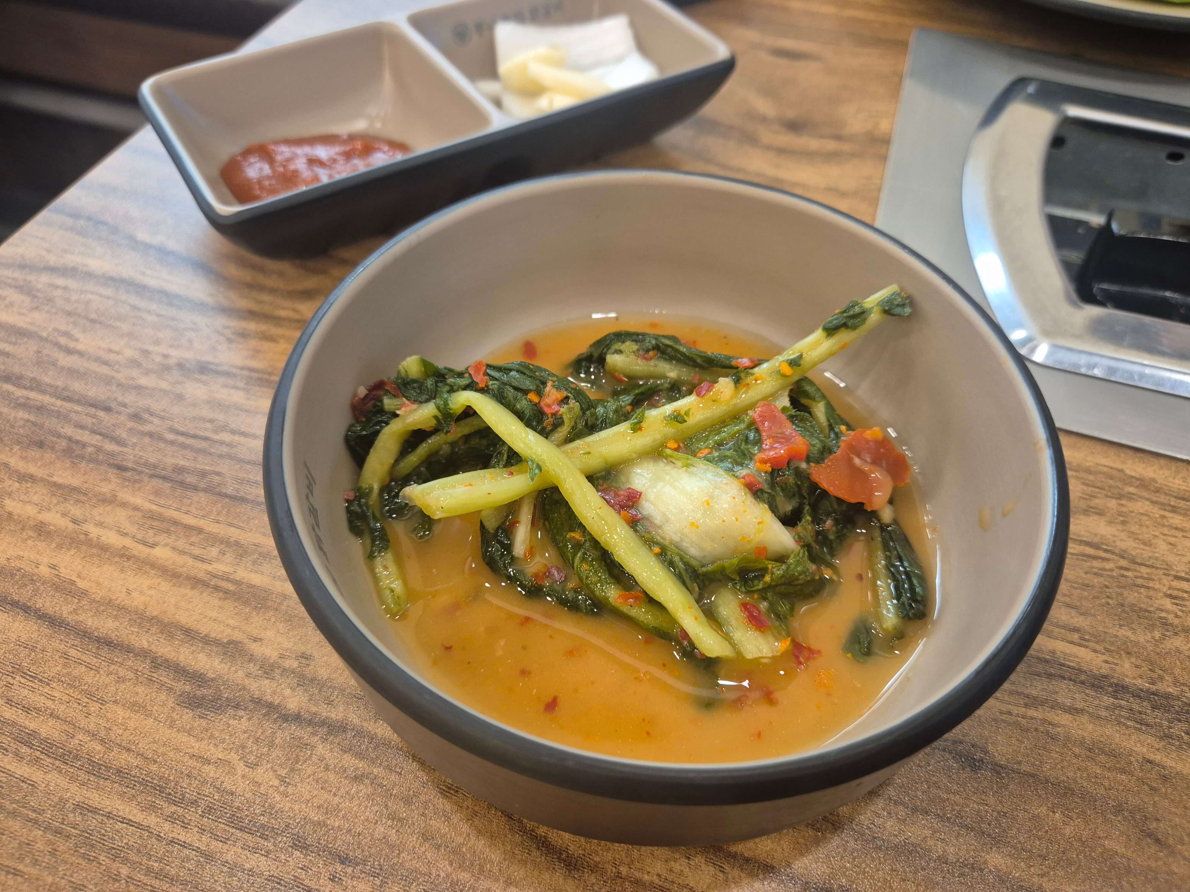 물김치, 열무김치, 쌈채소, 마늘, 양파, 쌈장까지 종류가 다양했고, 특히 아삭하고 깔끔한 열무김치가 인상적이었어요.
