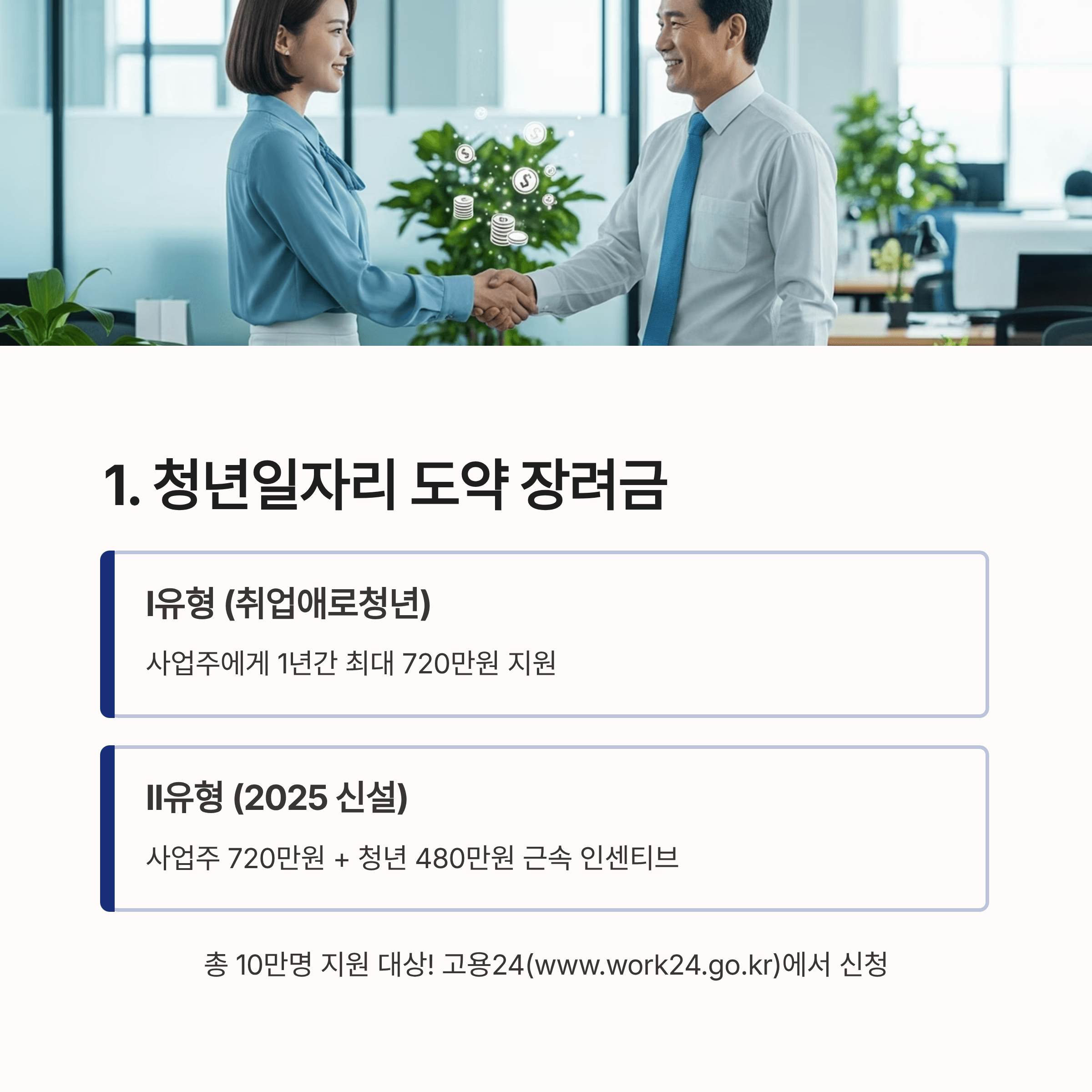 2025년에는 I유형(취업애로 청년)과 II유형(빈일자리 업종 취업 청년)이 운영되며, 특히 II유형은 청년 본인에게도 근속 인센티브가 지급되는 점이 특징입니다.