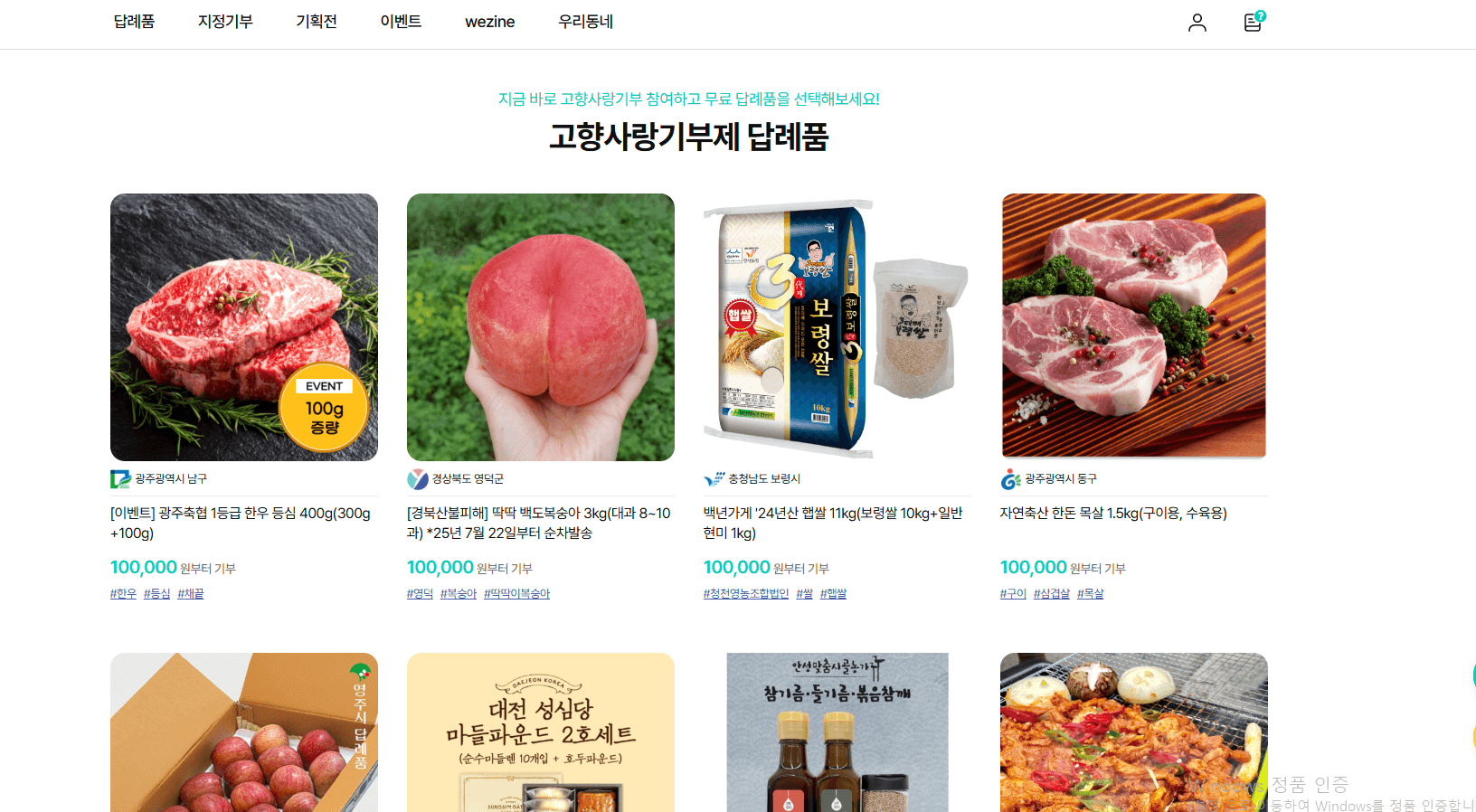 답례품은 단순한 구성에서 벗어나 퀄리티 높은 지역 특산물 위주로 제공됩니다.
