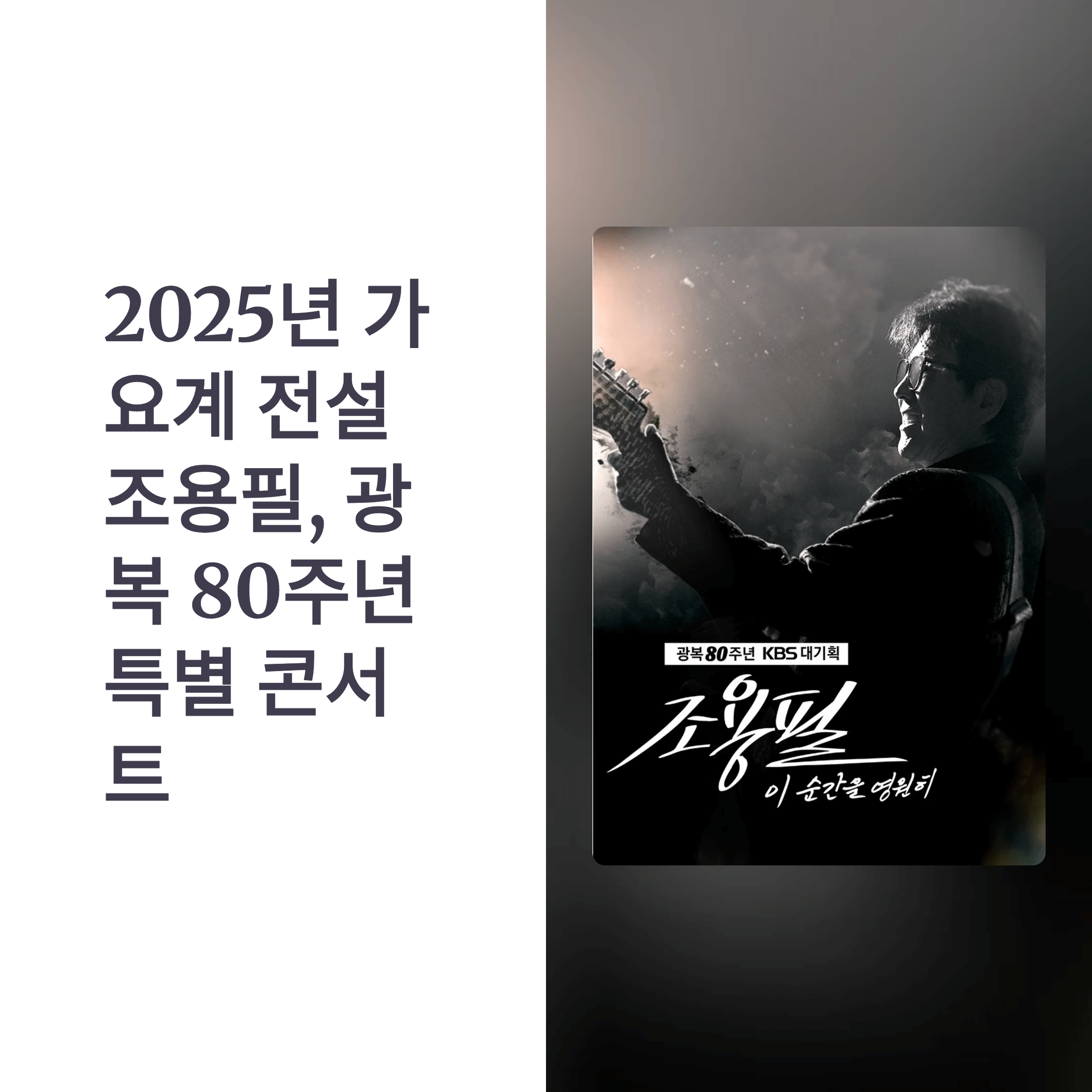 - 공연명 : 광복 80주년 KBS 특집 - 조용필 “이 순간 영원히”