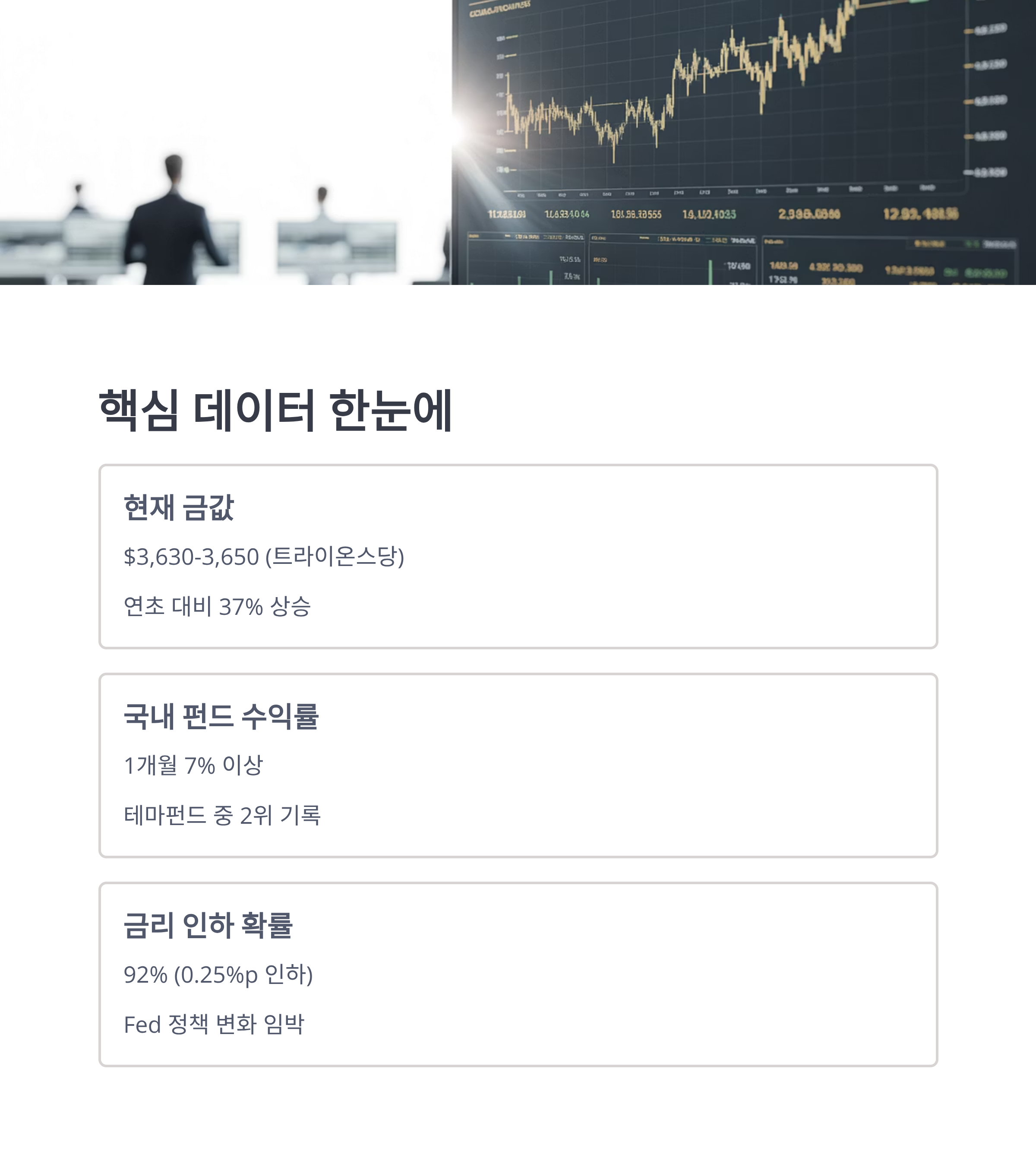 2025년 들어 금 가격은 무려 37.6%나 상승하여, 같은 기간 S&P 500 지수 상승률(약 8%)을 크게 초과했습니다.