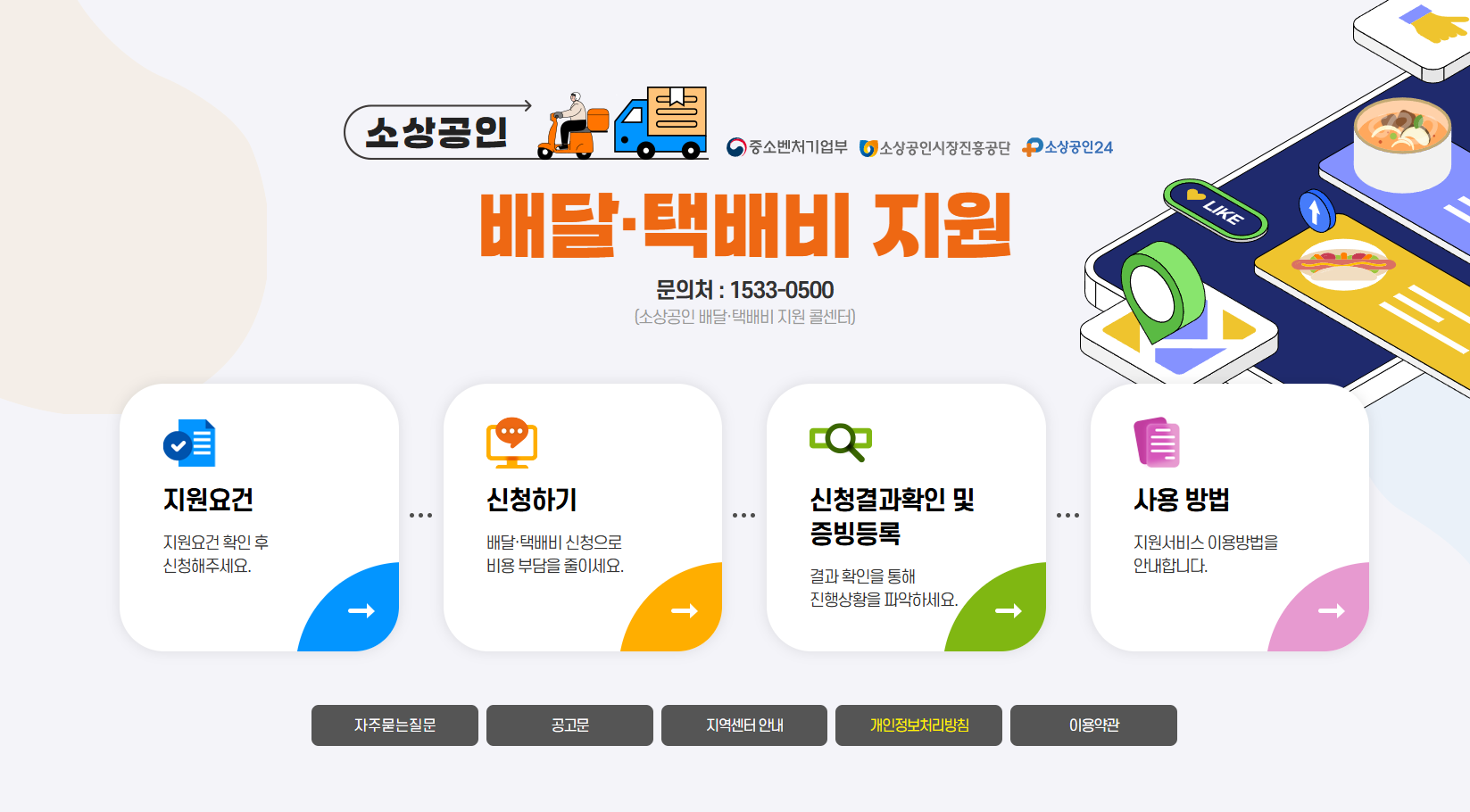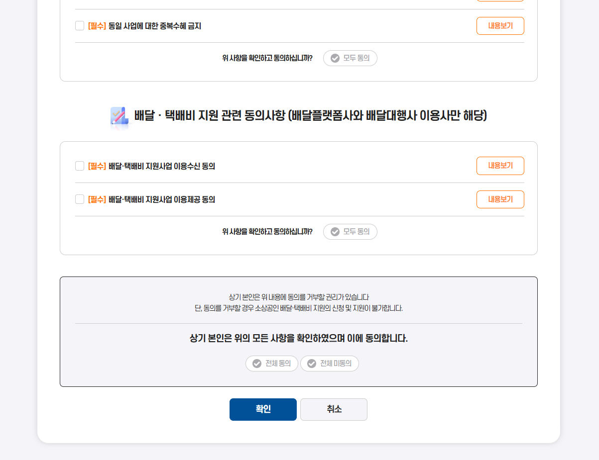 | 유형 2 | 택배, 퀵서비스, 직접 배달 이용 소상공인 | 증빙자료 제출 후 신청 |