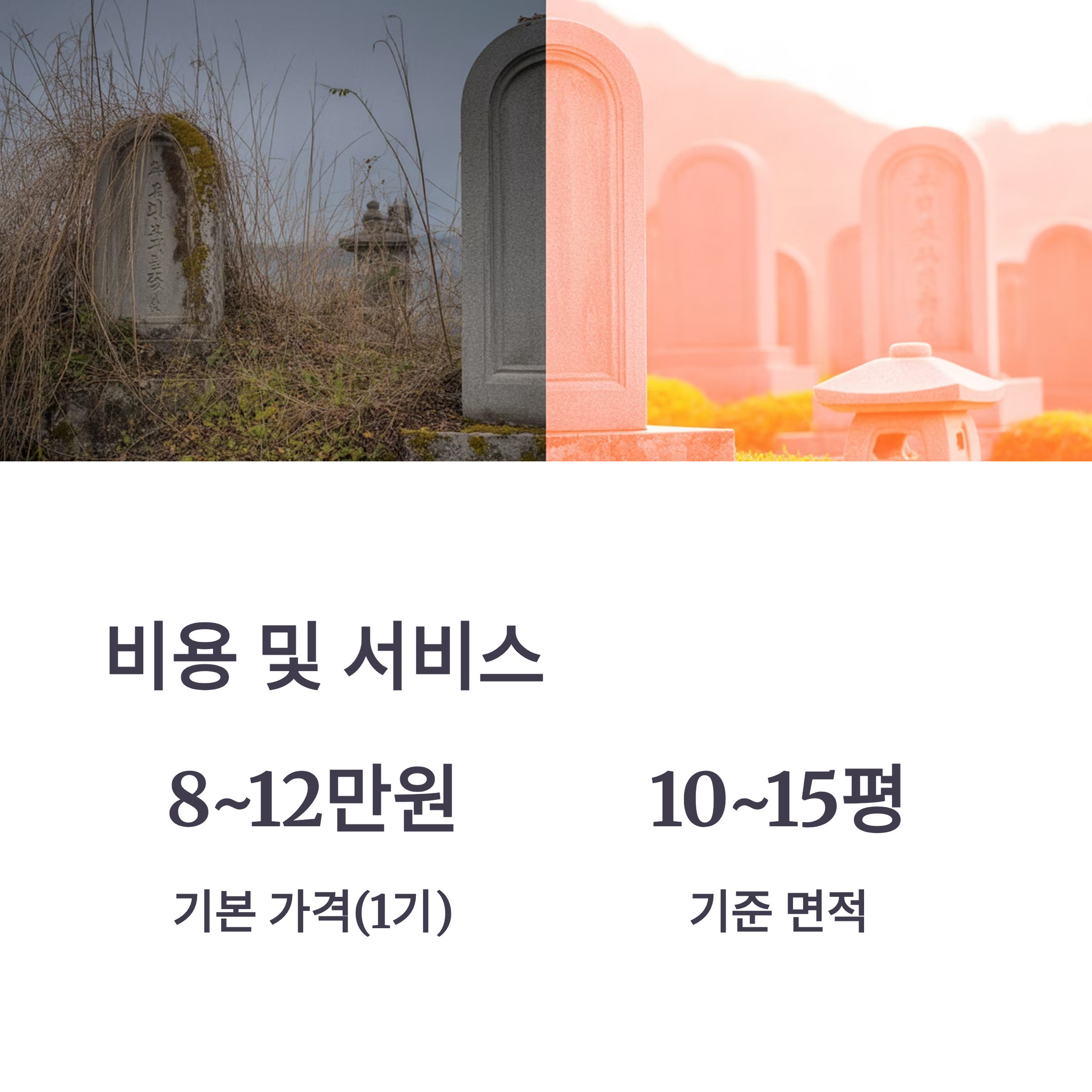 - 📝 신청 시 입력 정보: 이름, 연락처, 묘소 위치, 면적(평/㎡), 묘비명, 기본/추가 작업 여부