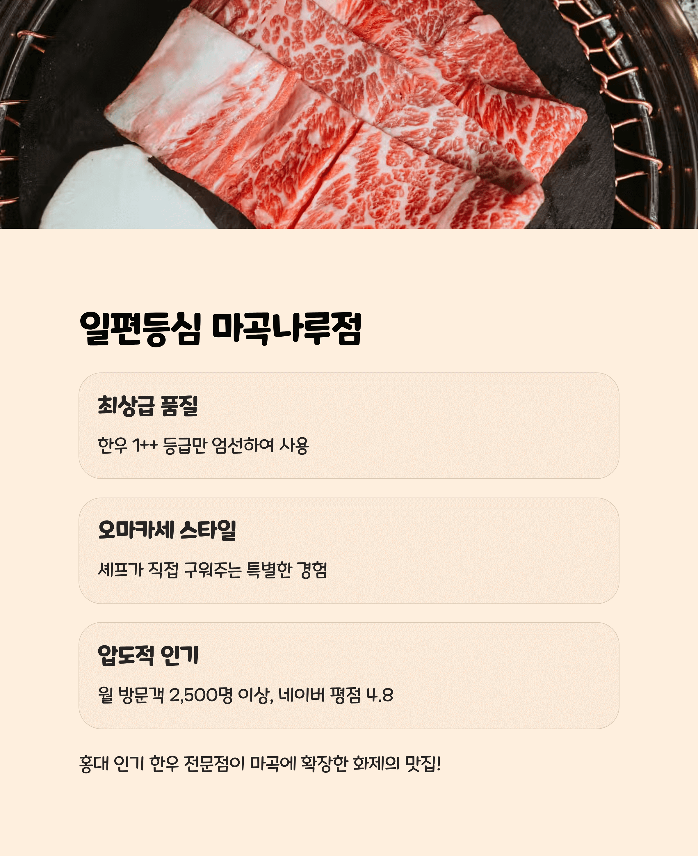 1. 일품한우 마곡본점 – 최고 매출과 고급 서비스