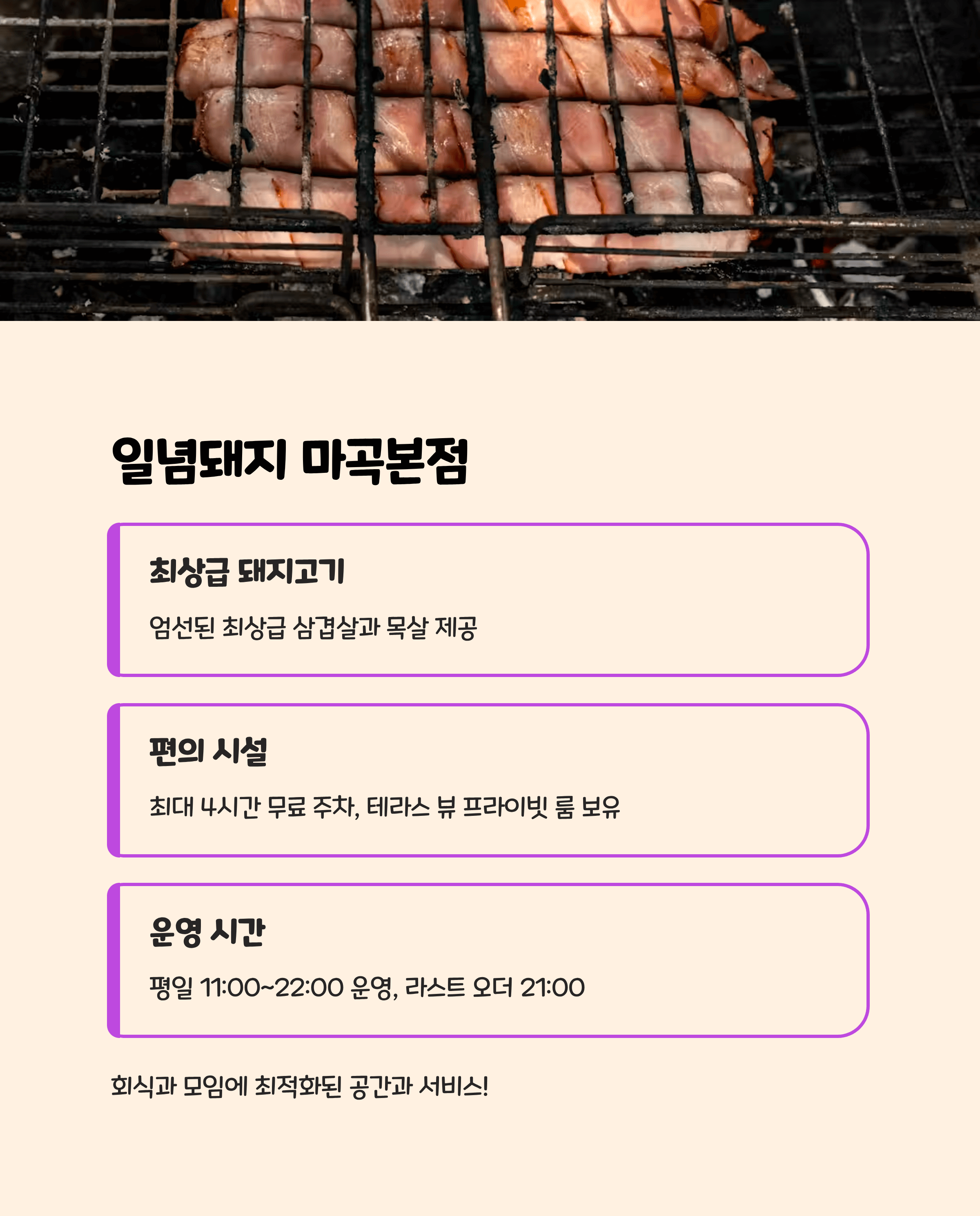 5. 일념돼지 마곡본점– 삼겹살과 목살 전문