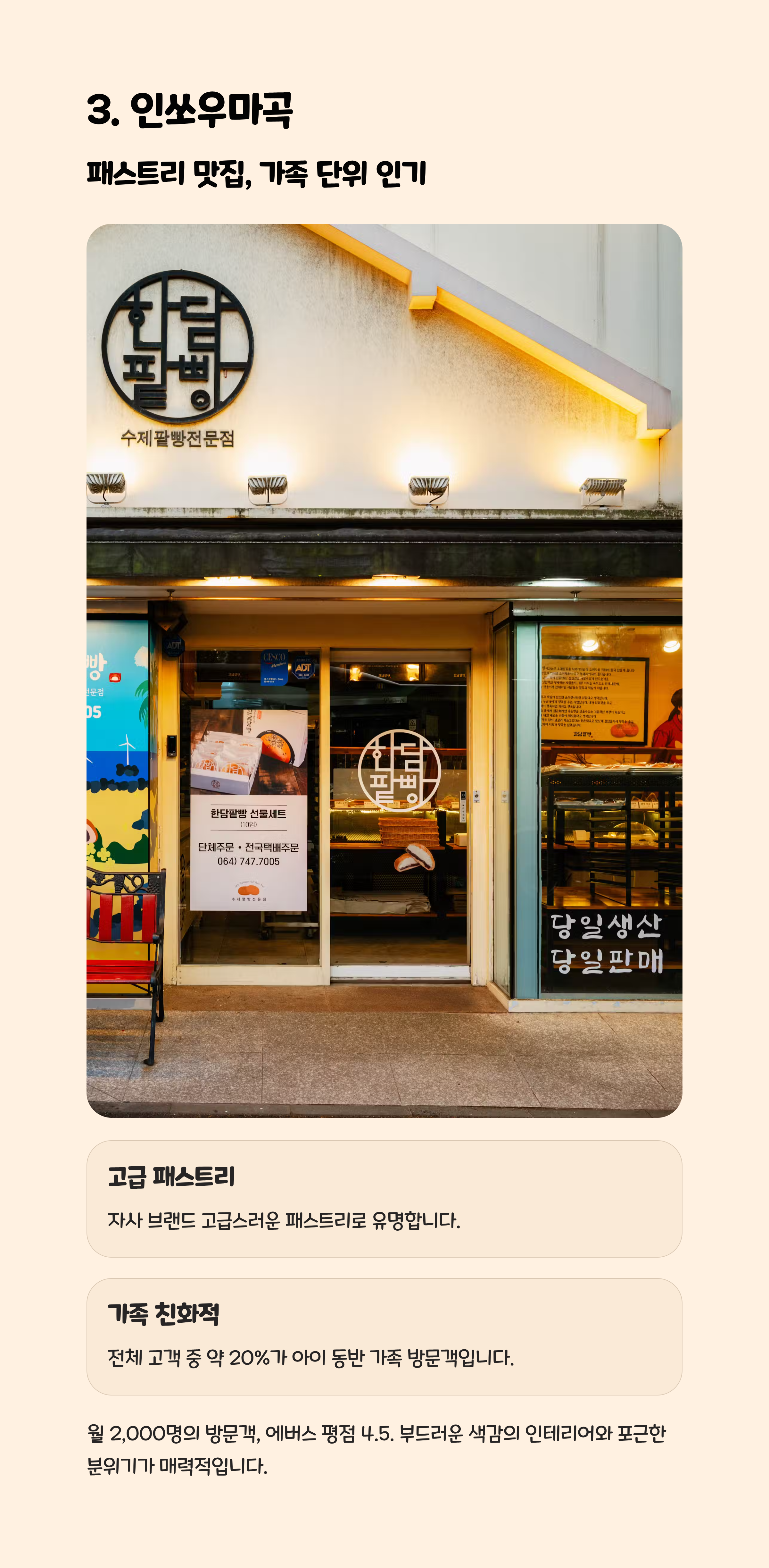 실제 전체 고객 중 약 20%가 아이를 동반한 가족 방문자로 분석됩니다. 에버스 평점은 4.5이며, 포근한 분위기 속 여유를 느끼기 좋은 곳입니다.