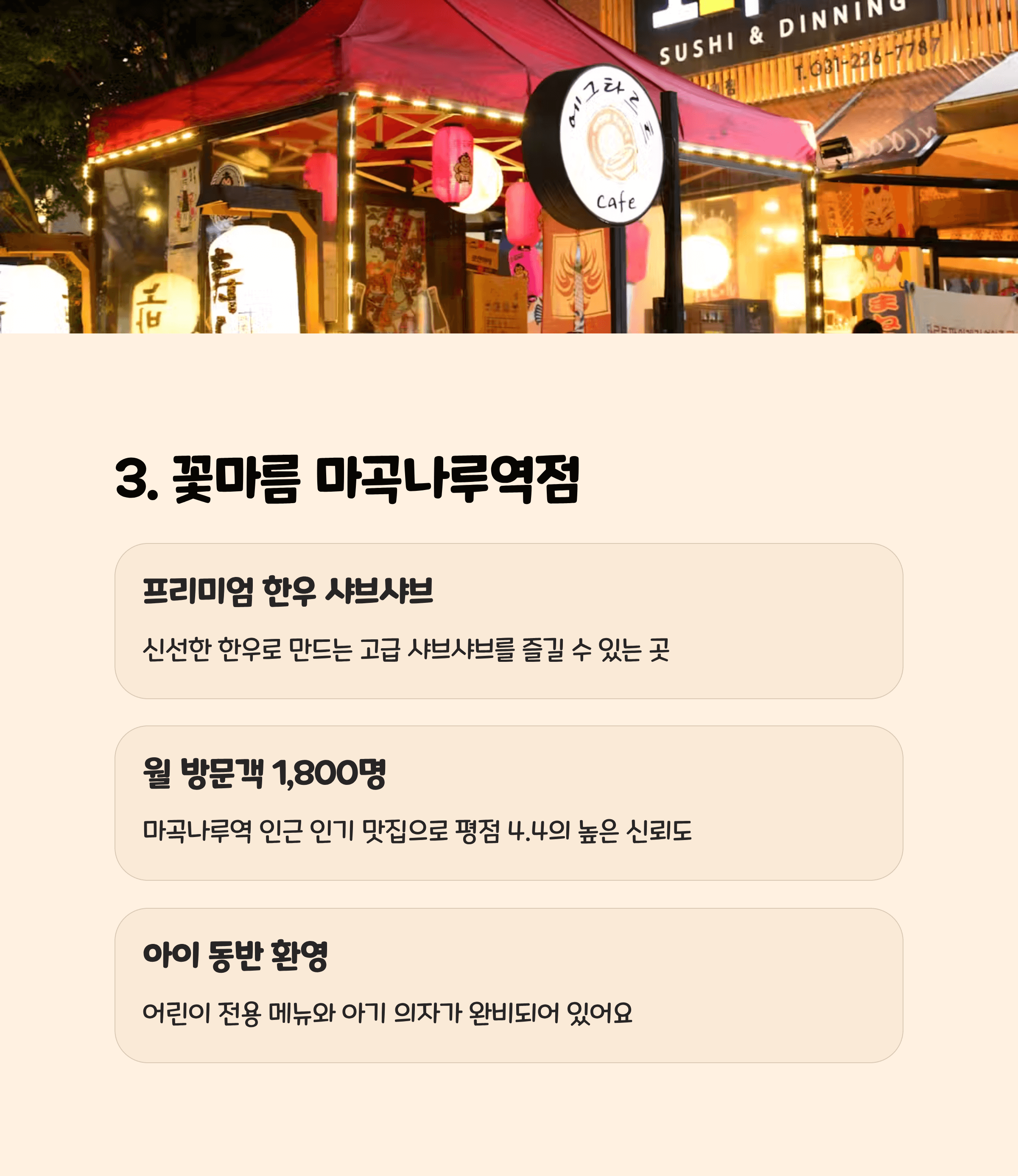3. 꽃마름 마곡나루역점 – 한우 샤브샤브