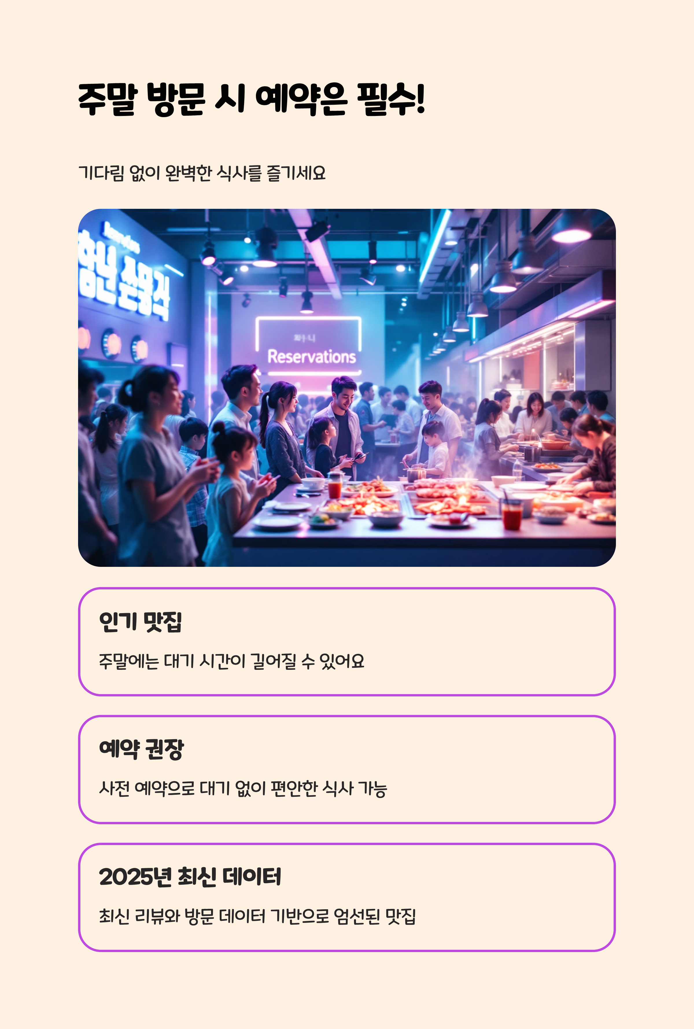 - 후기 및 평점: 맛집 리뷰 사이트 평균 평점 4.5점 이상, 주말 가족 단체손님 비율 약 60%