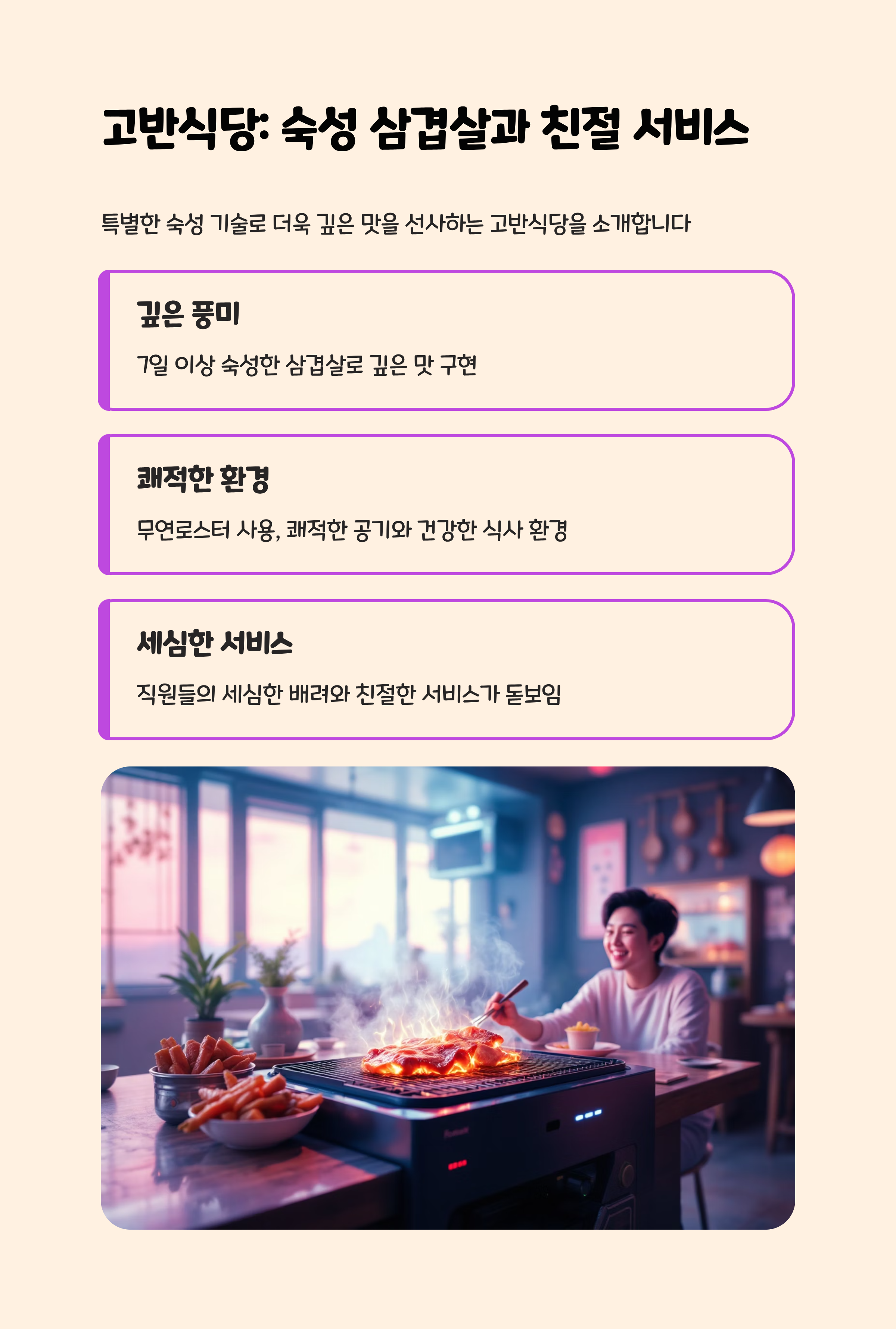 - 대표 메뉴: 숙성 삼겹살, 목살, 한우구이