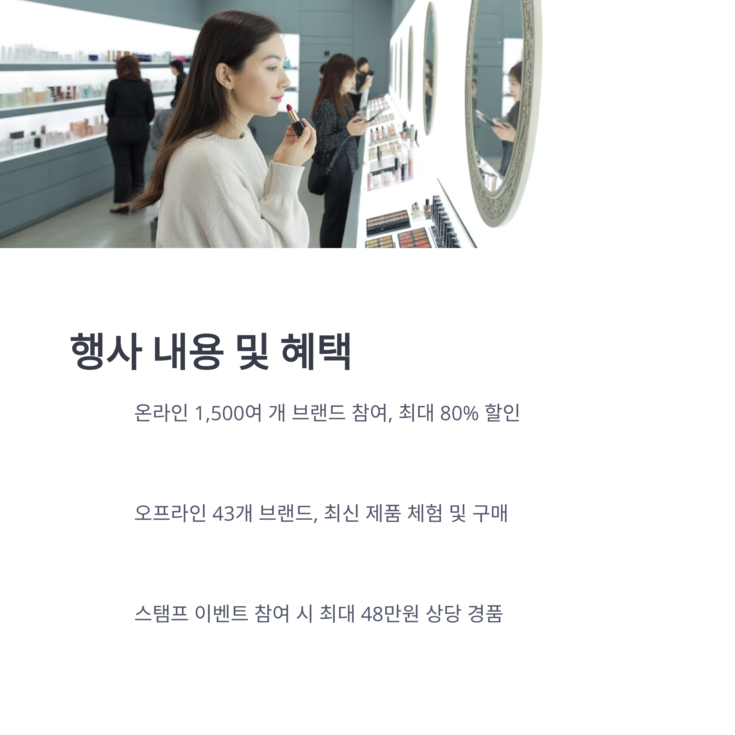 - 오프라인: 43개 뷰티 브랜드 체험 & 신제품 직접 구매