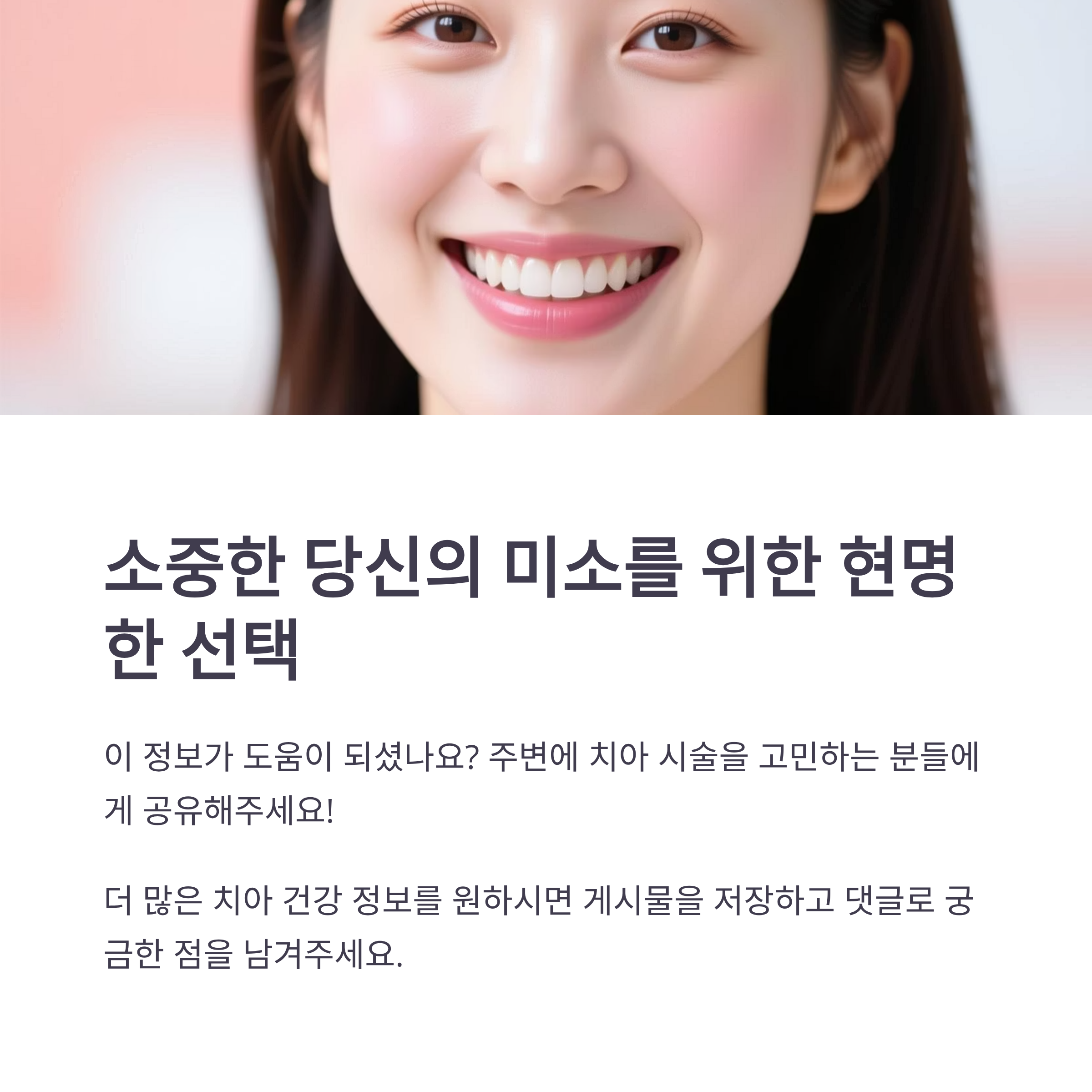 - 미니쉬: 치아 삭제를 최소화하면서 자연 치아의 건강·기능 회복 원하는 경우 권장.