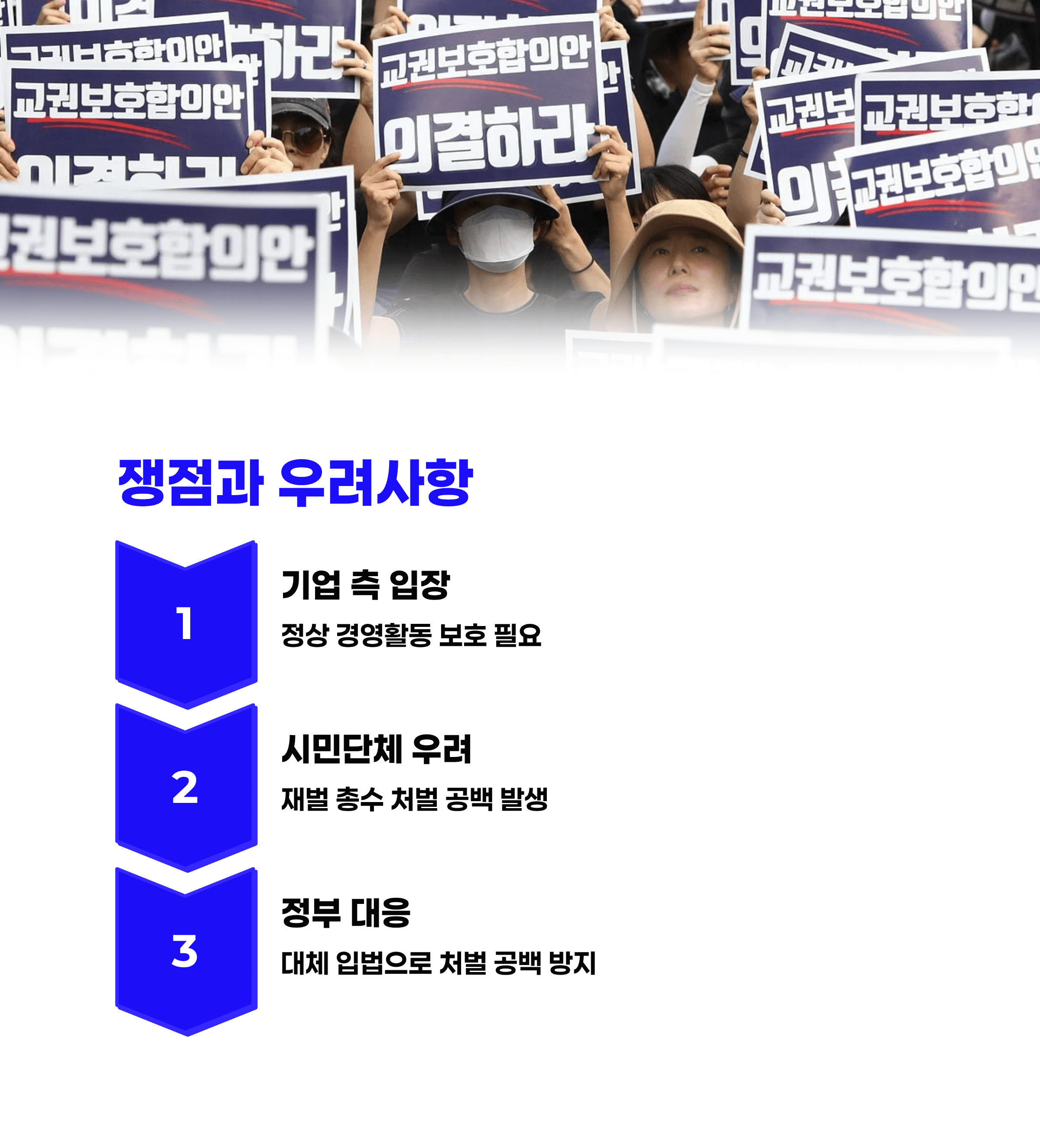 정부는 기업 경영의 자율성과 효율성을 강조하며 폐지를 밀어붙이고 있지만, 법적 공백과 사회적 형평성을 우려하는 목소리 또한 만만치 않습니다.