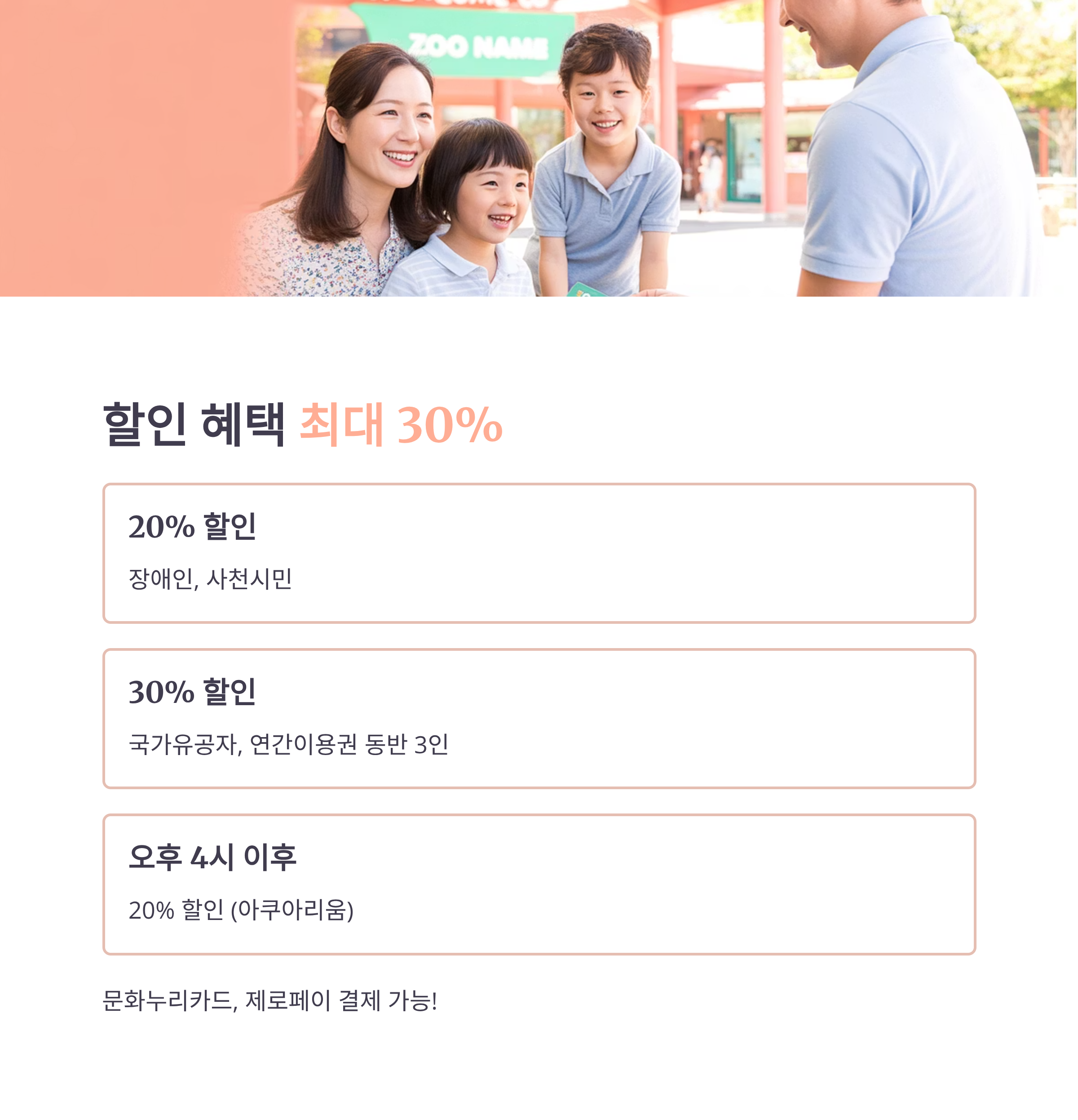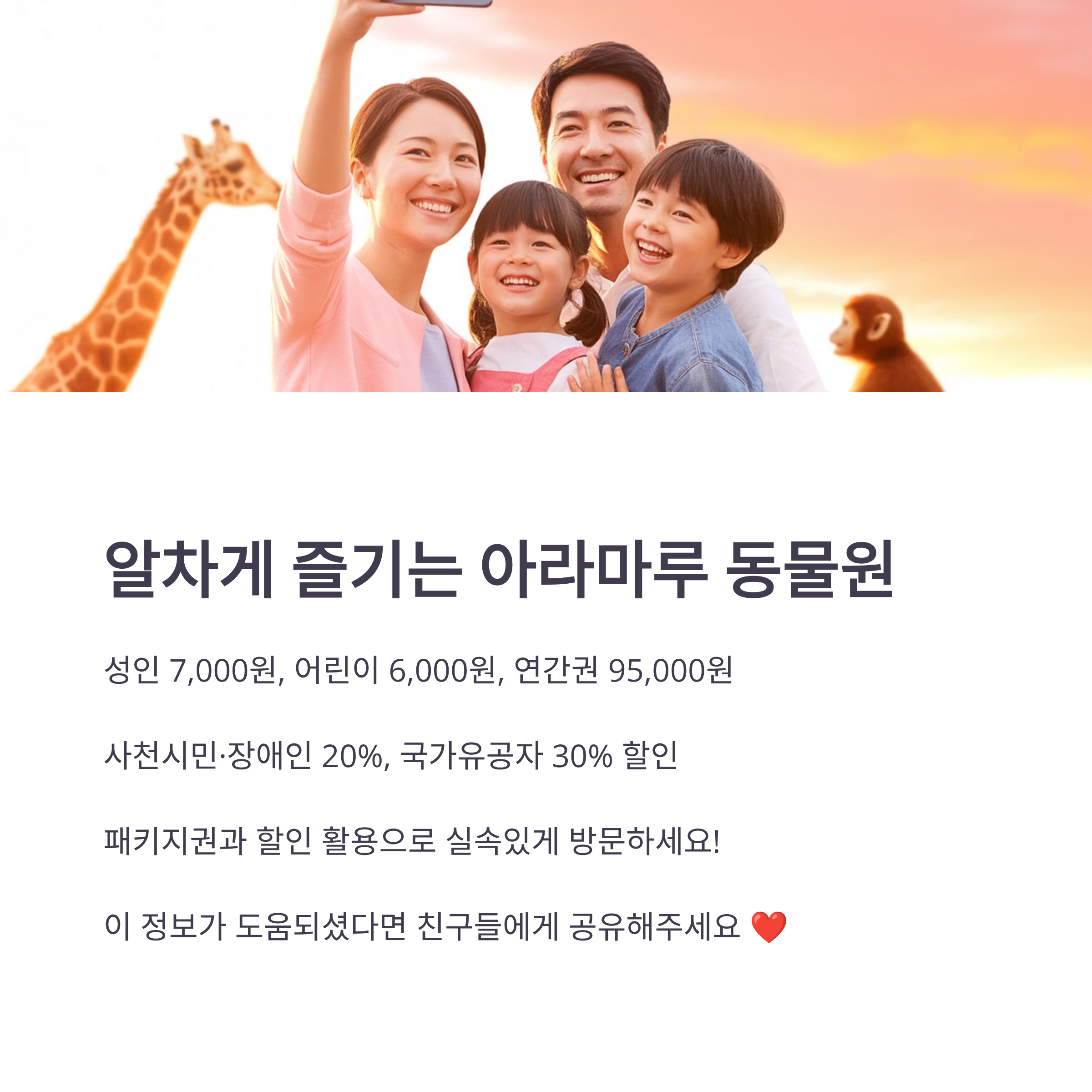 게다가 입장료는 합리적이고, 다양한 할인 혜택까지 준비되어 있답니다!