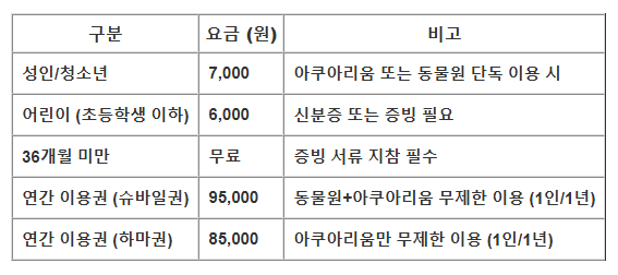 - 🎫 아쿠아리움+동물원 패키지 당일 이용 시 할인 가능