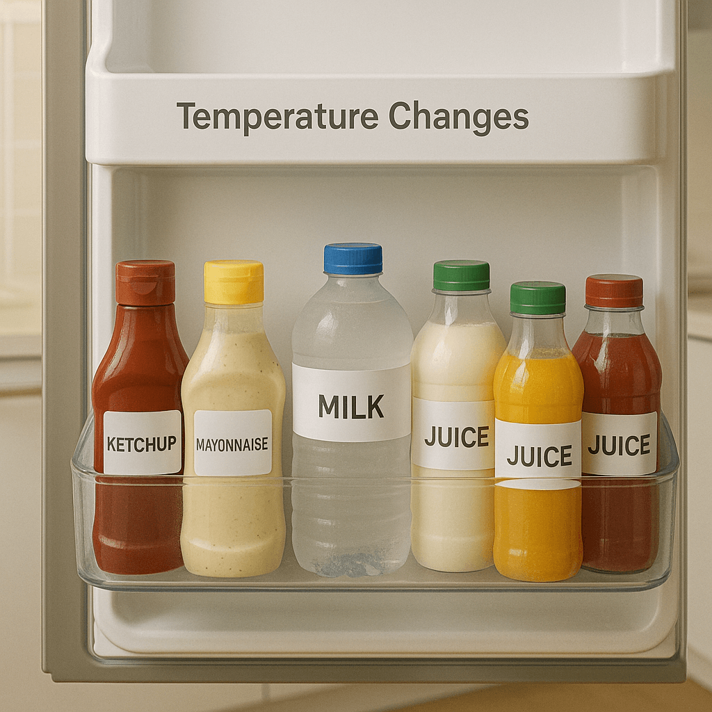 1. 문 쪽 수납칸 – 온도 변화 가장 큰 구역