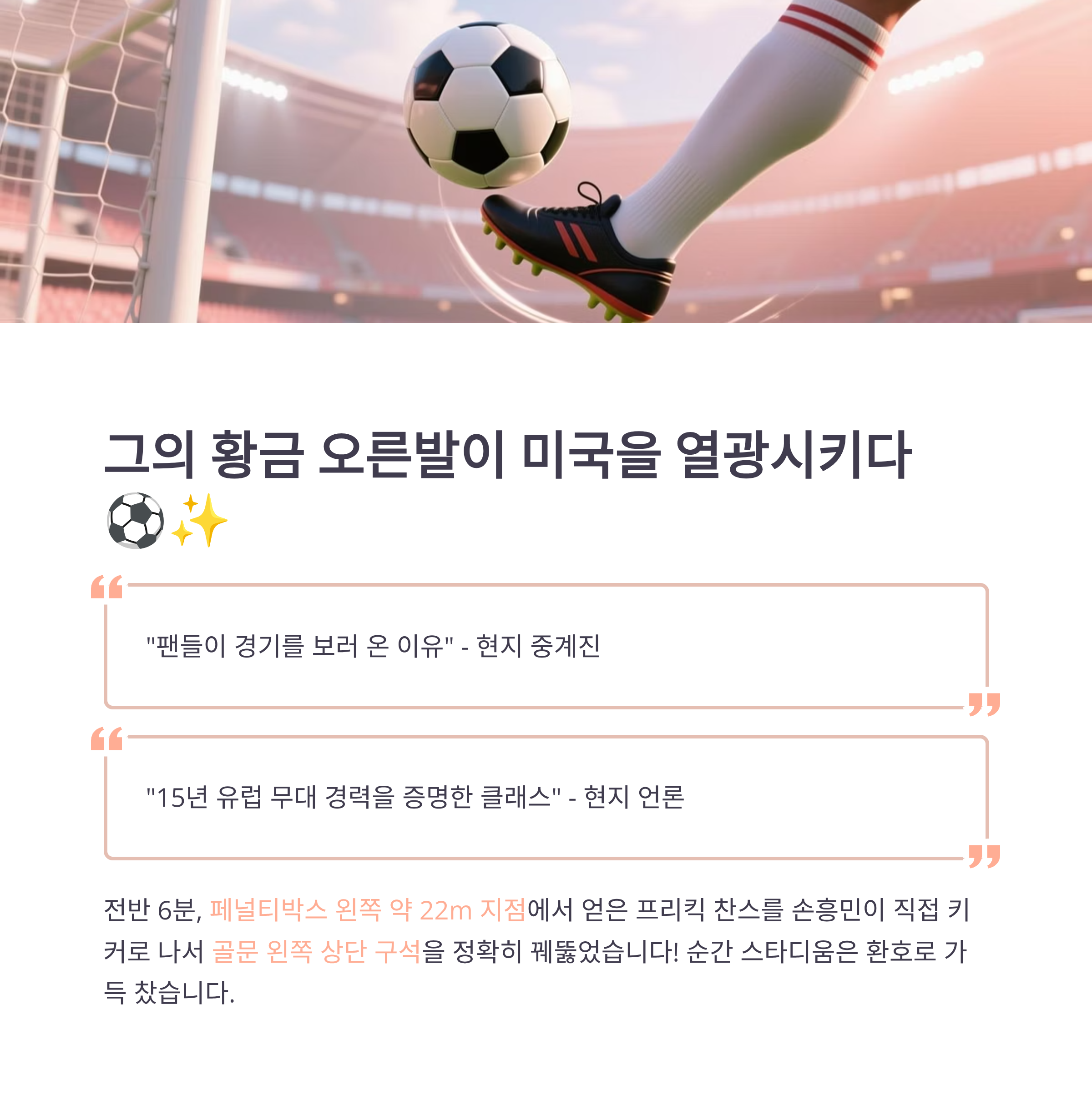 - 손흥민 기록: 선발 풀타임(90분), 프리킥 골, POM 선정