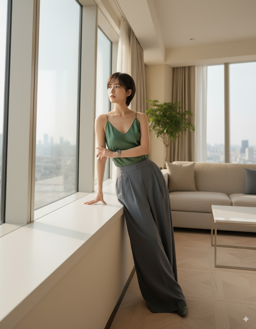 2025년 가을, 송혜교는 '올리브그린 실크 브이넥 톱'으로 단순한 스타일이 아닌 계절을 대표하는 감성과 컬러 트렌드를 제시했습니다.