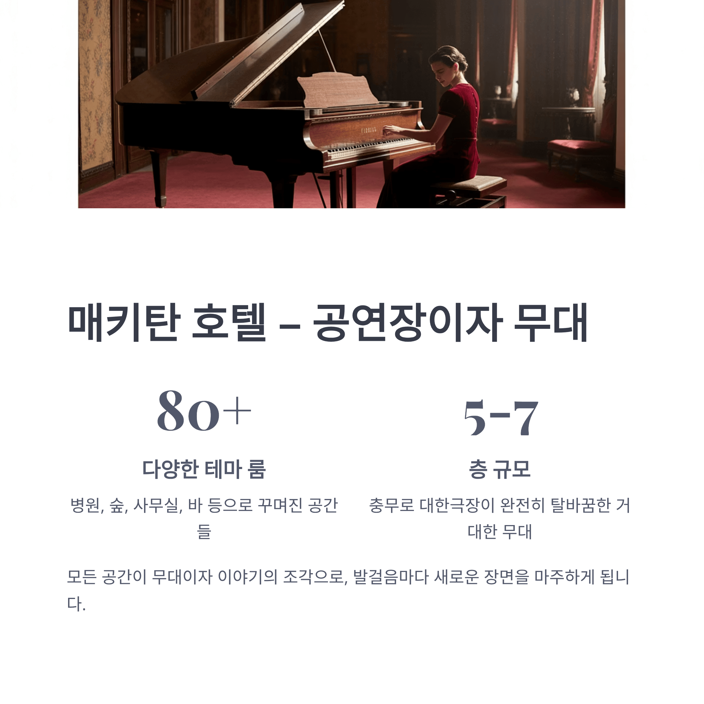오직 지금, 충무로 매키탄 호텔에서만 경험할 수 있는 이 독보적인 무대는 한 번의 관람으로 끝내기엔 아쉬운 감동을 선사합니다.