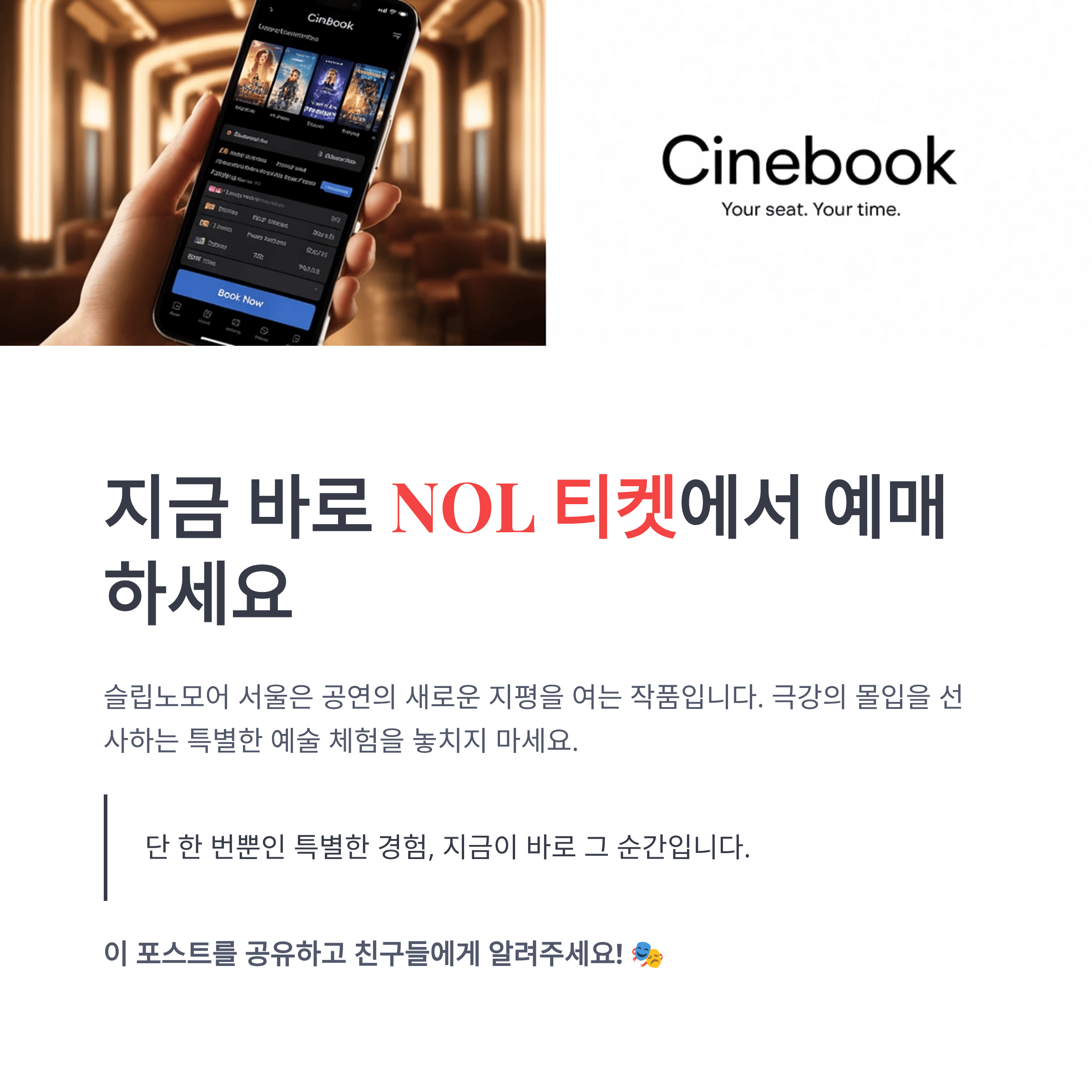 극장을 벗어난 자유로운 공간에서 펼쳐지는 이야기는 관객 각자의 상상력과 감정을 자극하며, 극강의 몰입을 선사합니다.
