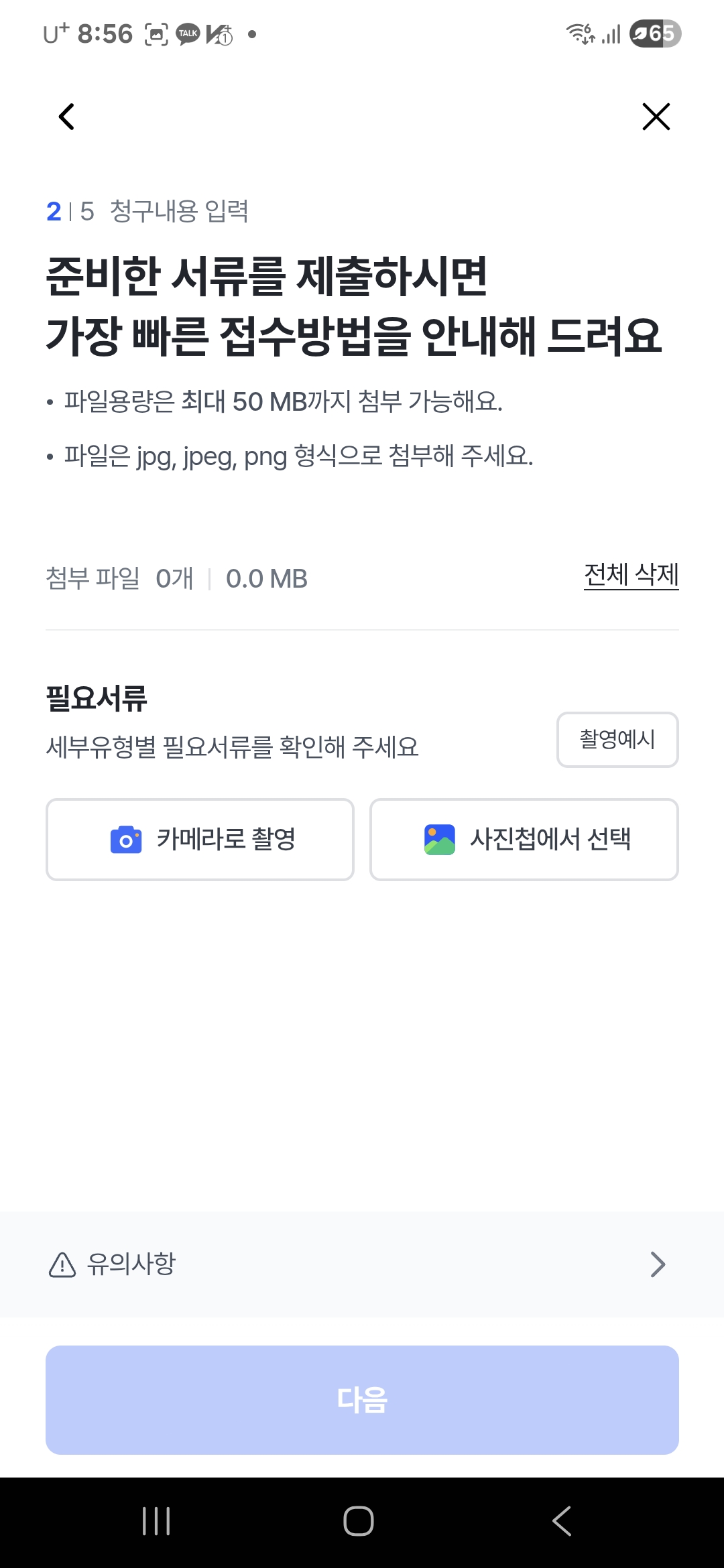 - 서류 제출: 진단서, 영수증, 세부내역서 사진 등록
