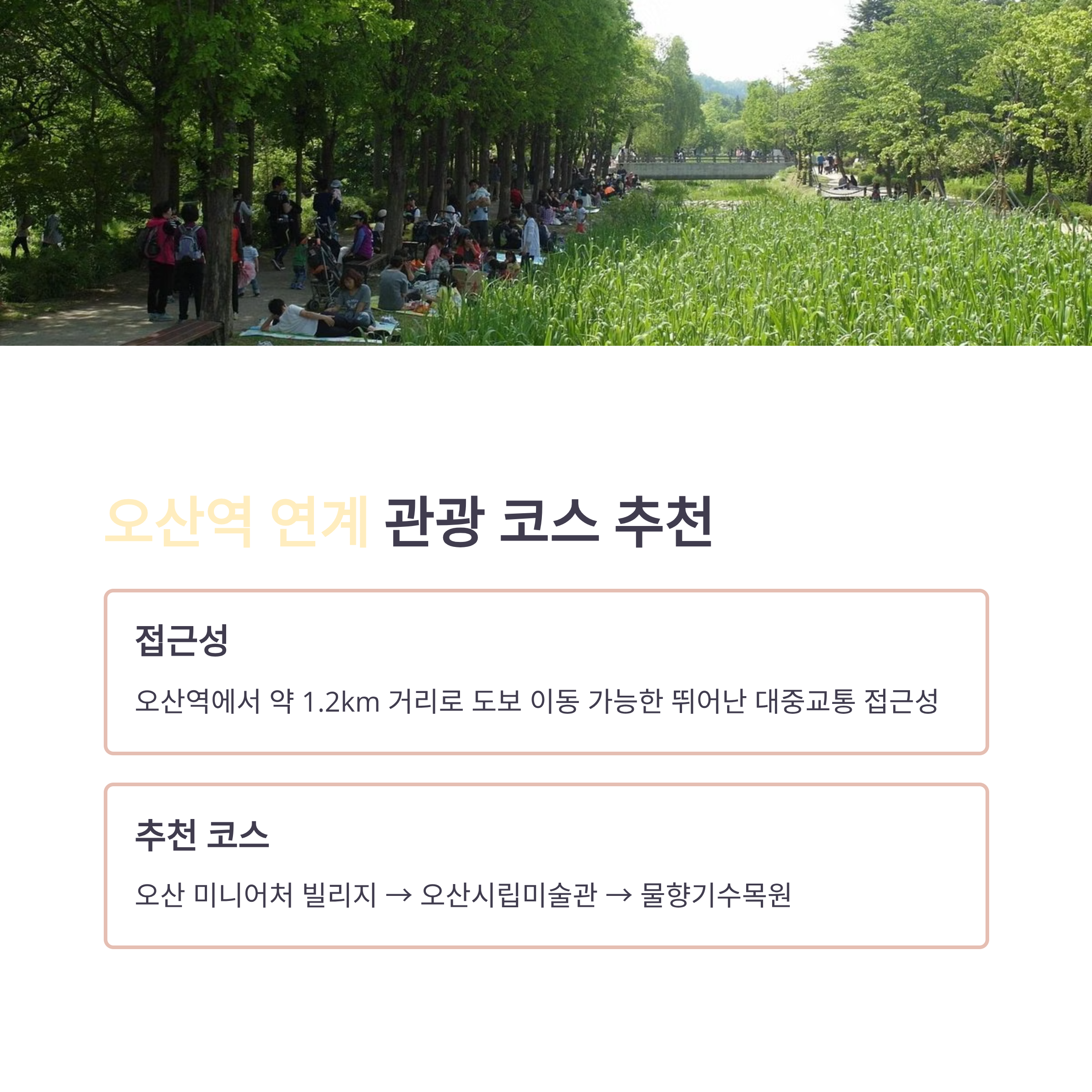 - 할인 혜택: 다자녀 가정, 오산 시민 대상 할인 제공