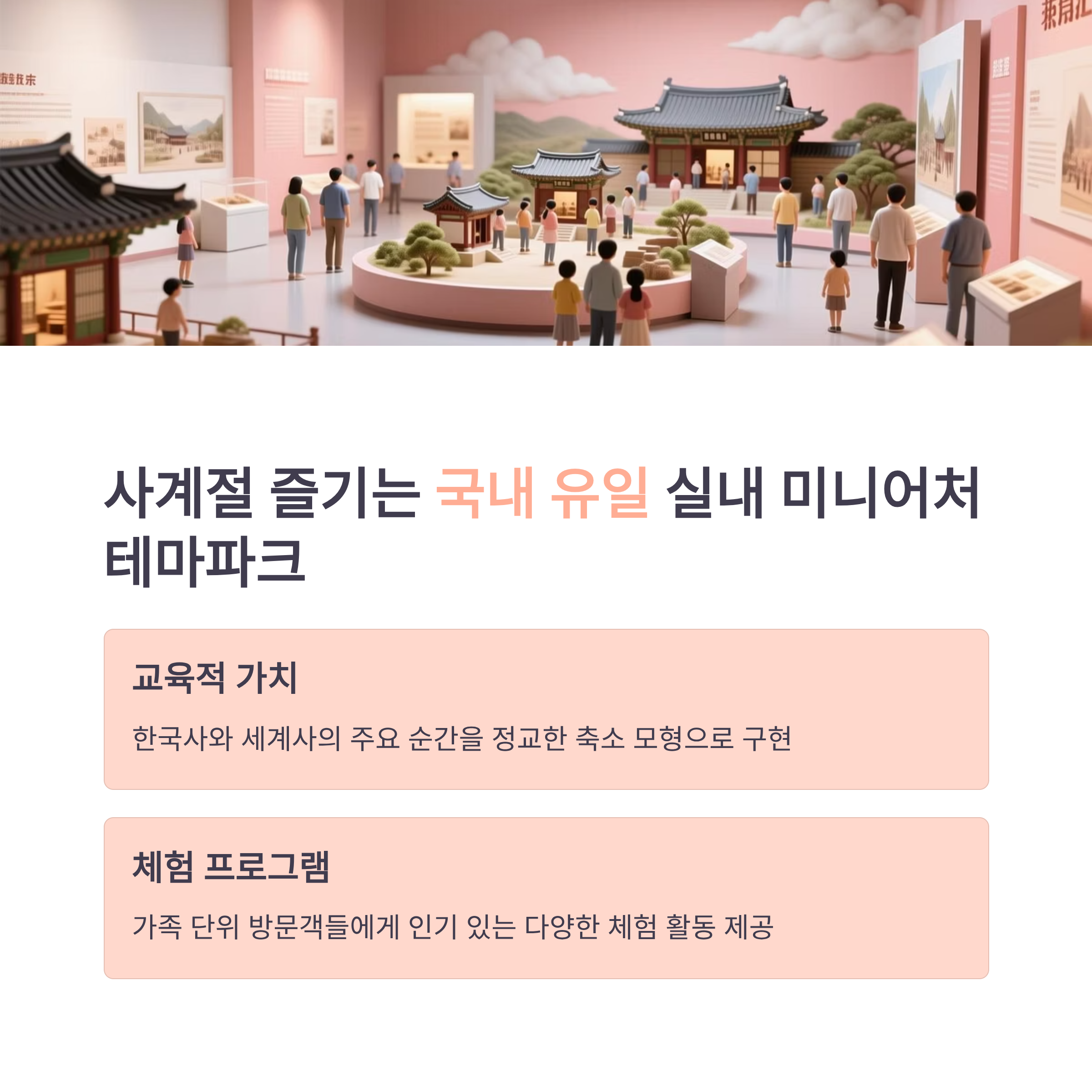 이러한 데이터는 오산 미니어처 빌리지가 단순한 놀이 공간을 넘어, 교육적이고 체계적인 가족형 콘텐츠로 자리 잡았음을 보여줍니다.