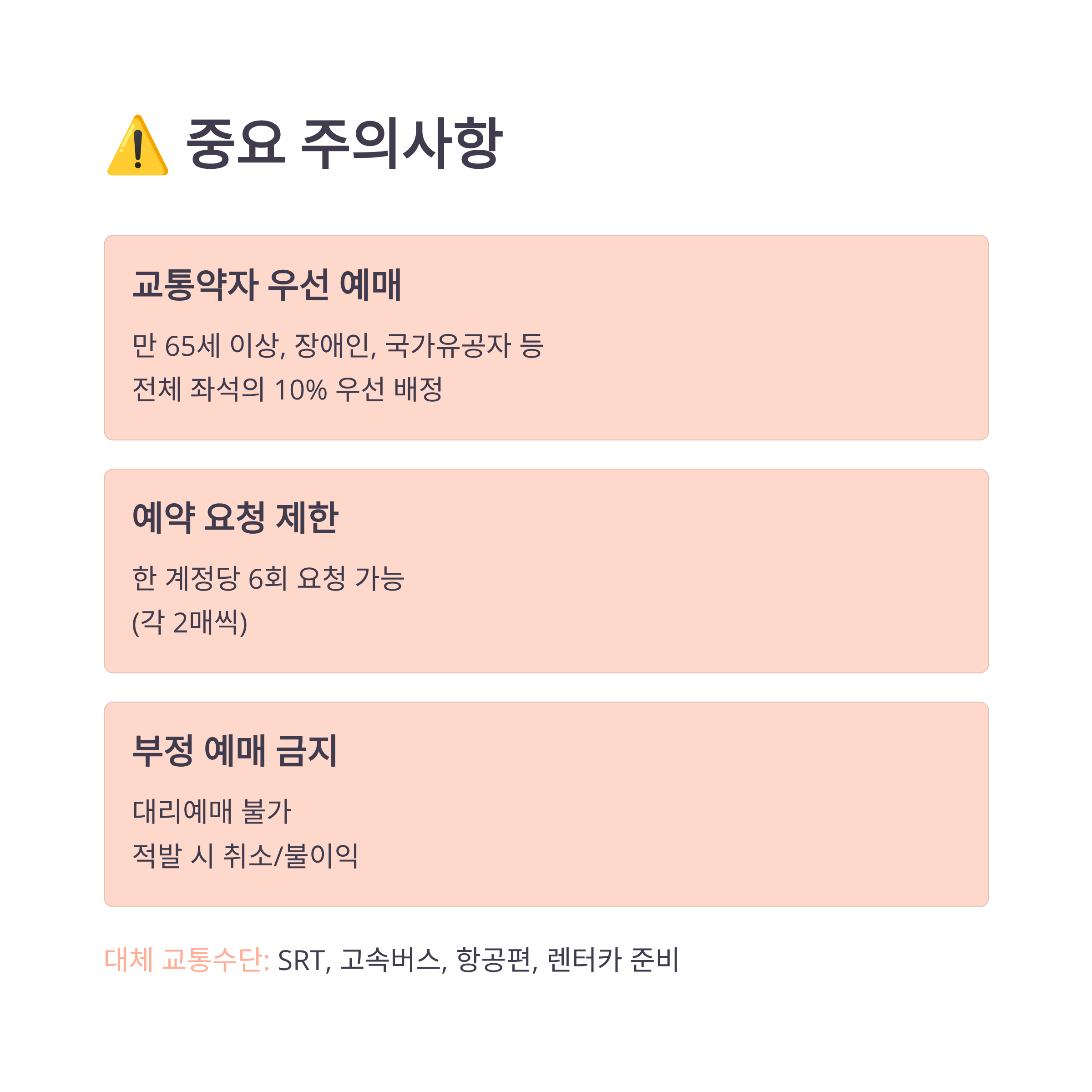 - 1일 차: 교통약자(장애인, 국가유공자 등) 우선 배정 (총 좌석의 약 10%)