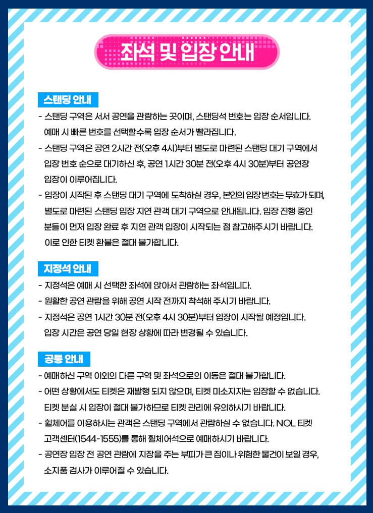 예매 내역, 신분증, 물품보관 가방, 방수팩, 돗자리 등을 준비하면 좋아요!
