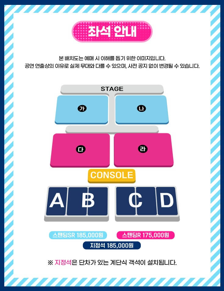 동선이 짧은 좌석이나, 무대 정면 구역은 경쟁이 치열하므로 B안, C안까지 준비해 두는 것이 좋습니다.