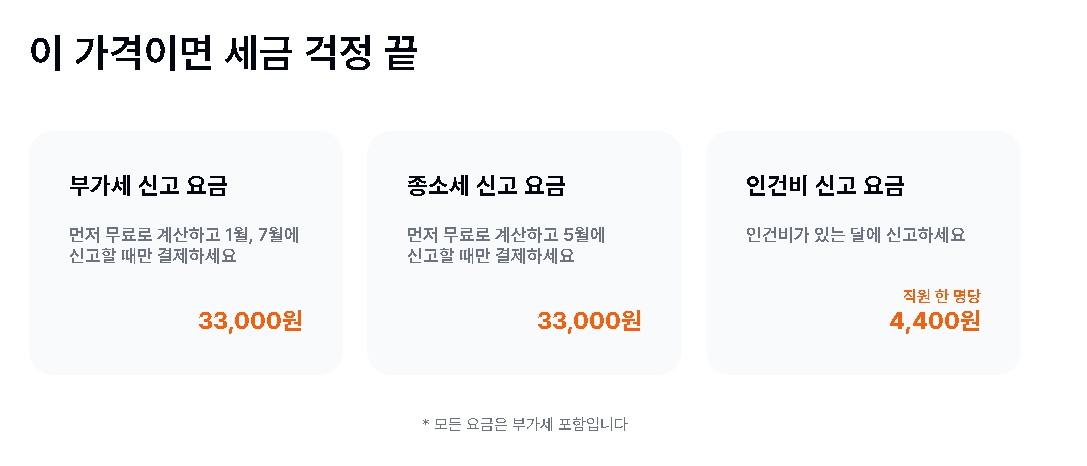 | 신고 대행 | 3만3천 원/건 | 계산 후 종소세 신고까지 원스톱 |