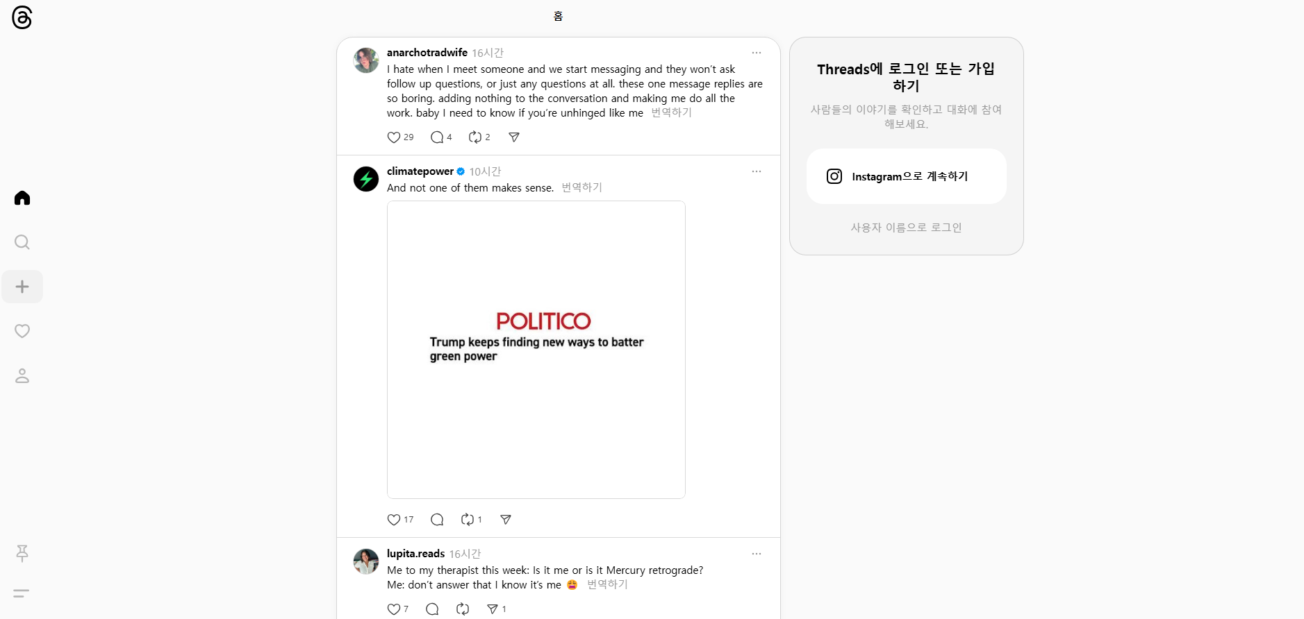 | 웹 브라우저 접속 | threads.net 접속 후 로그인 → 대부분 기능 사용 가능 |