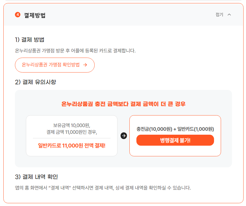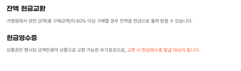 ✔️ 가맹점에서 60% 이상 사용 후 잔액은 현금으로 거스름 가능