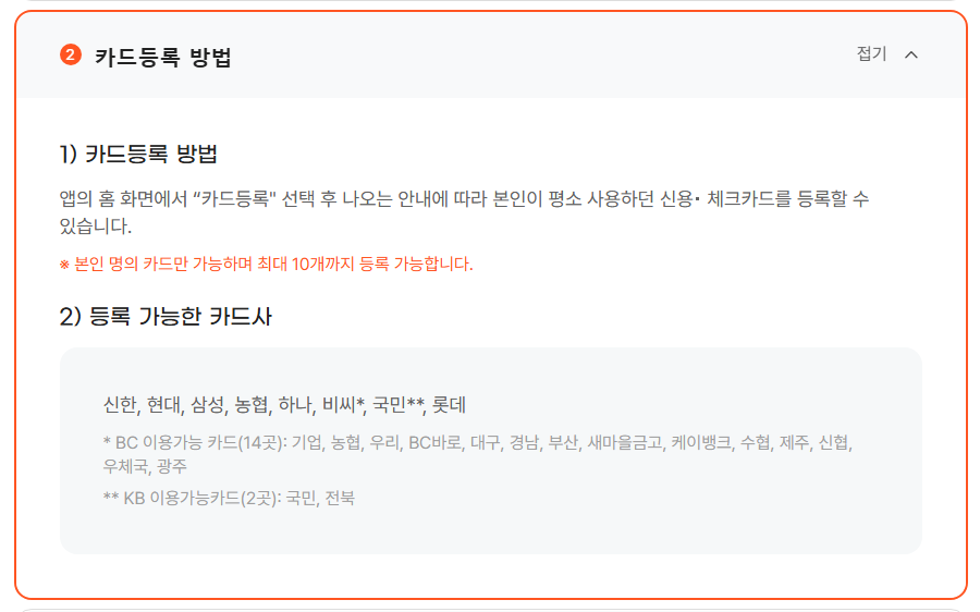 ✔️ 카드 연동 후 QR 또는 바코드 결제 방식으로 사용