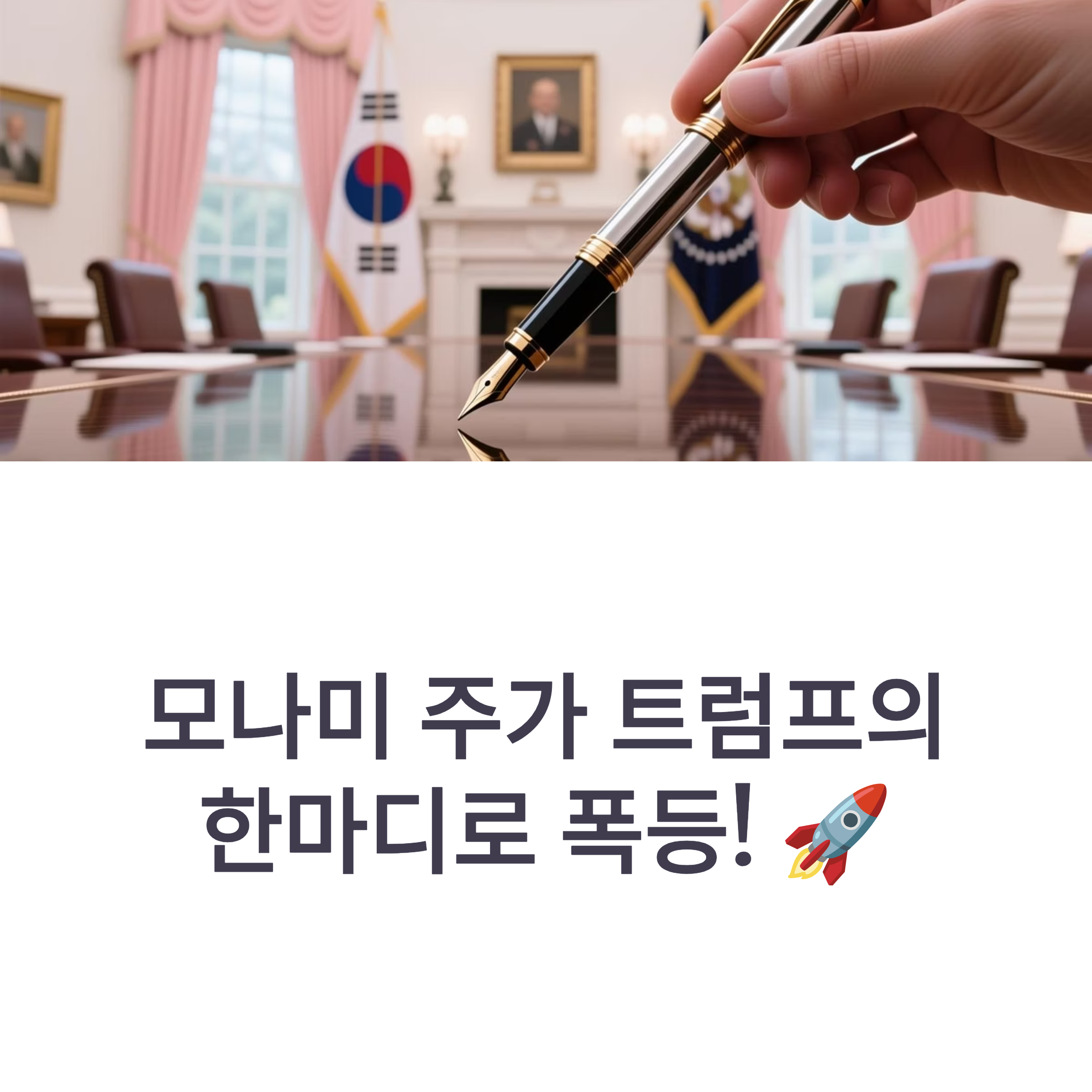 모나미 주가는 2025년 8월 한·미 정상회담 ‘트럼프 만년필 효과’로 단 이틀 만에 60% 가까이 폭등하며 19개월 만의 최고치를 경신했습니다.