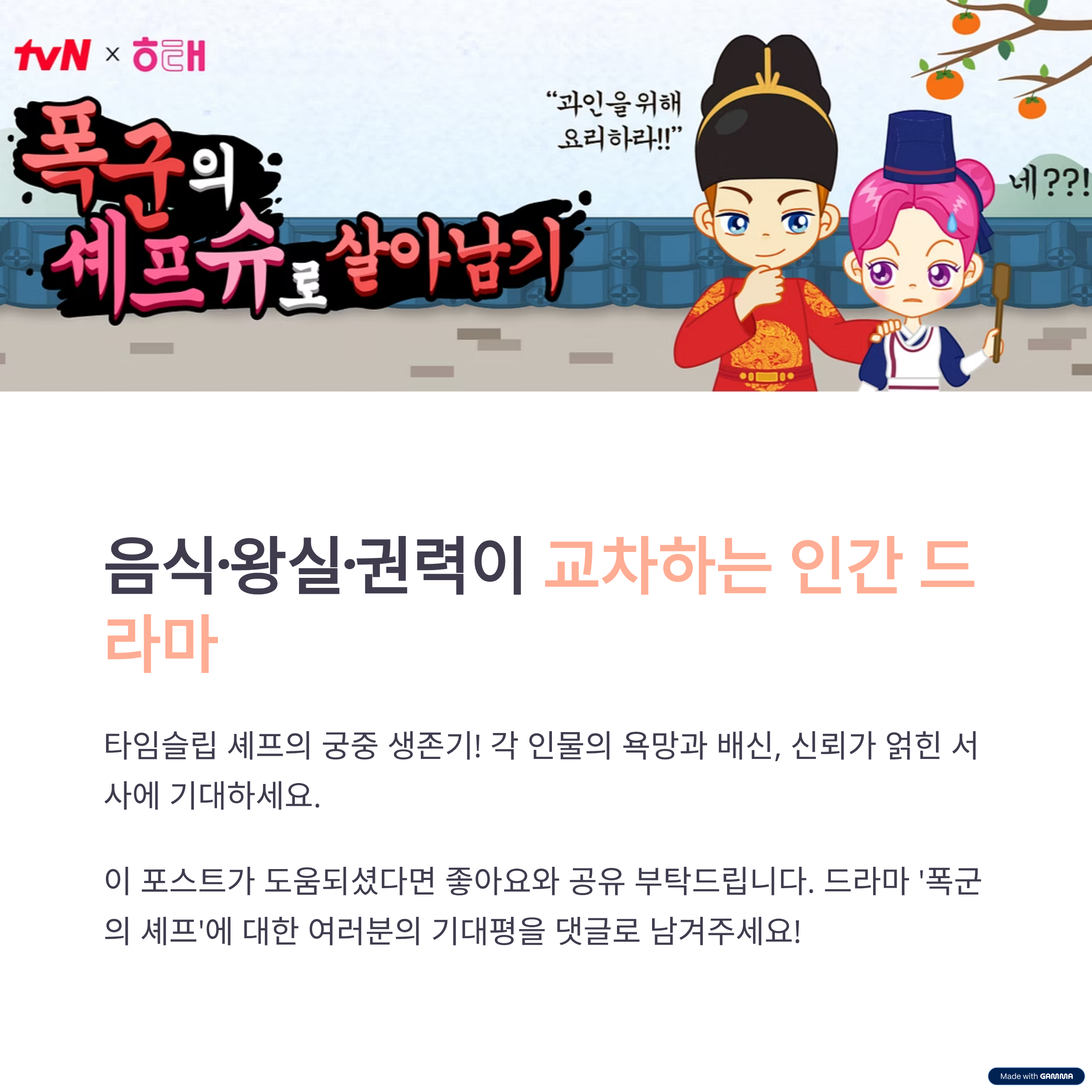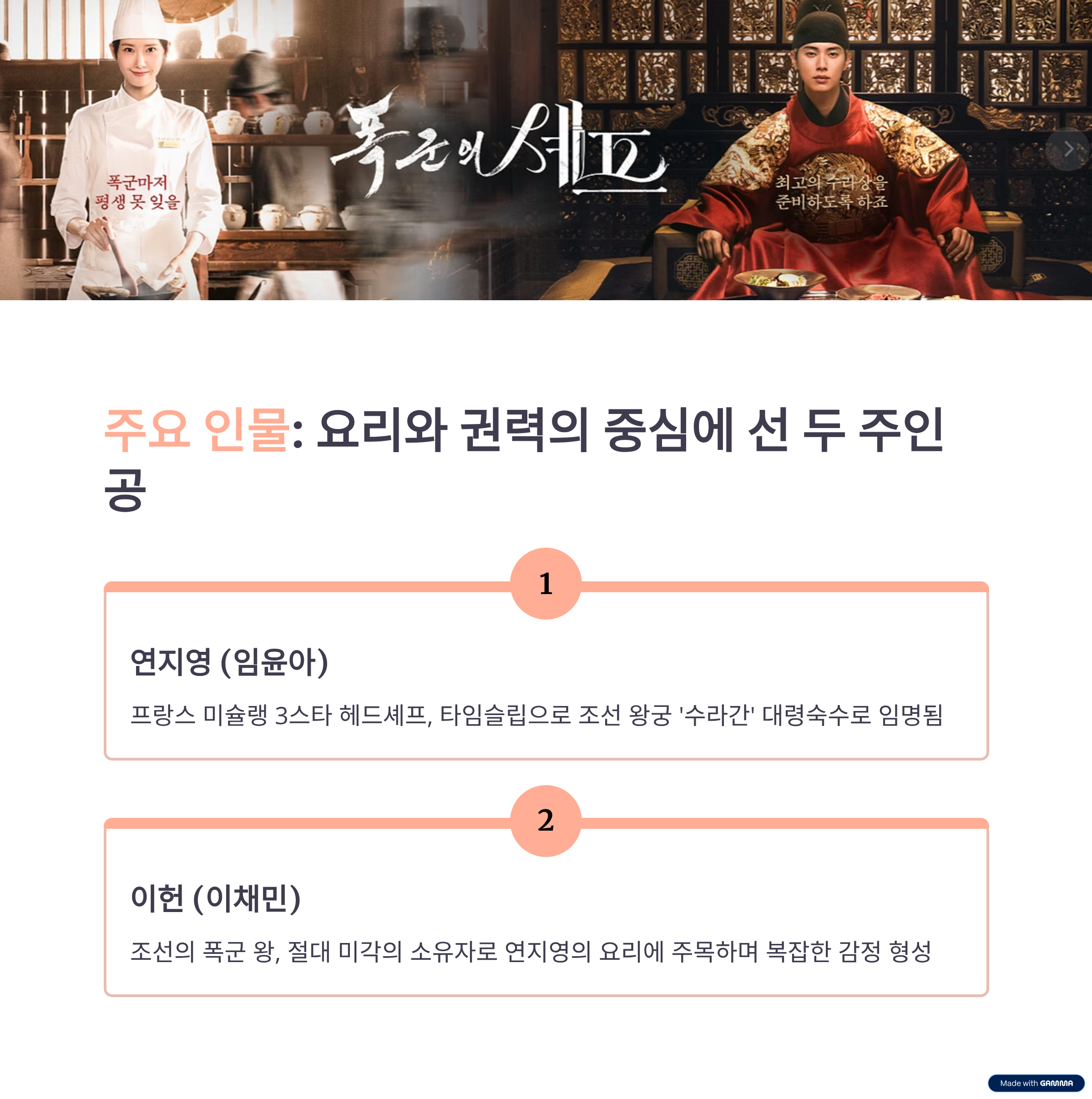 tvN 드라마 <폭군의 공식 셰프>(2025)는 “타임슬립 셰프 vs 절대미각 폭군”을 중심으로 권력, 로맨스, 정치 암투가 얽힌 긴장감 있는 인물관계도를 보여줍니다.