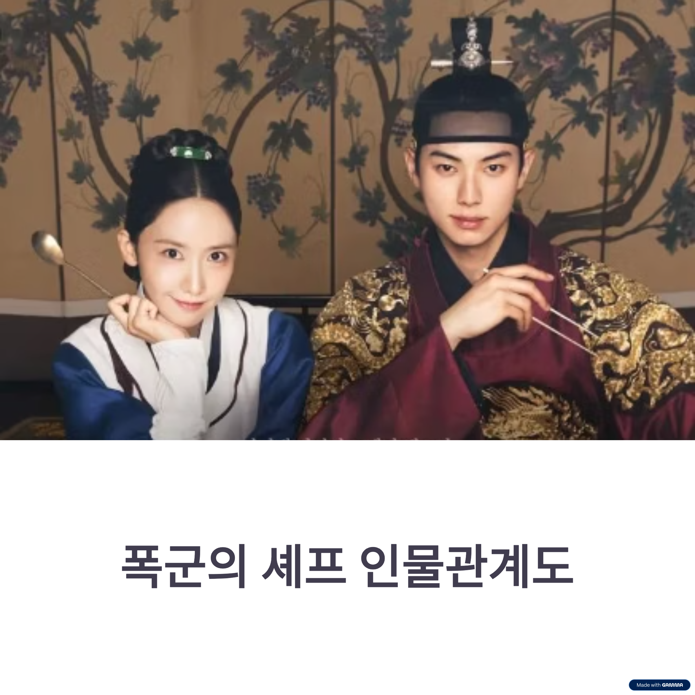 <폭군의 공식 셰프>의 인물관계도는 단순한 선악 구도가 아닌, 각 인물의 욕망·신뢰·배신이 교차하는 복합 구조로 이루어져 있습니다.