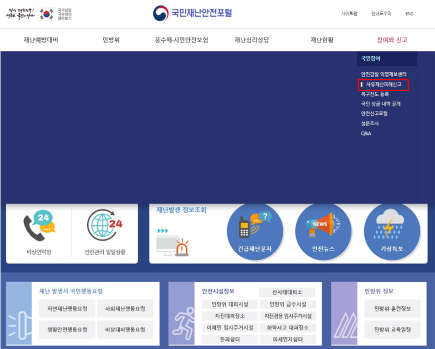 - 로그인 후 ‘자연재해 피해신고’ 선택