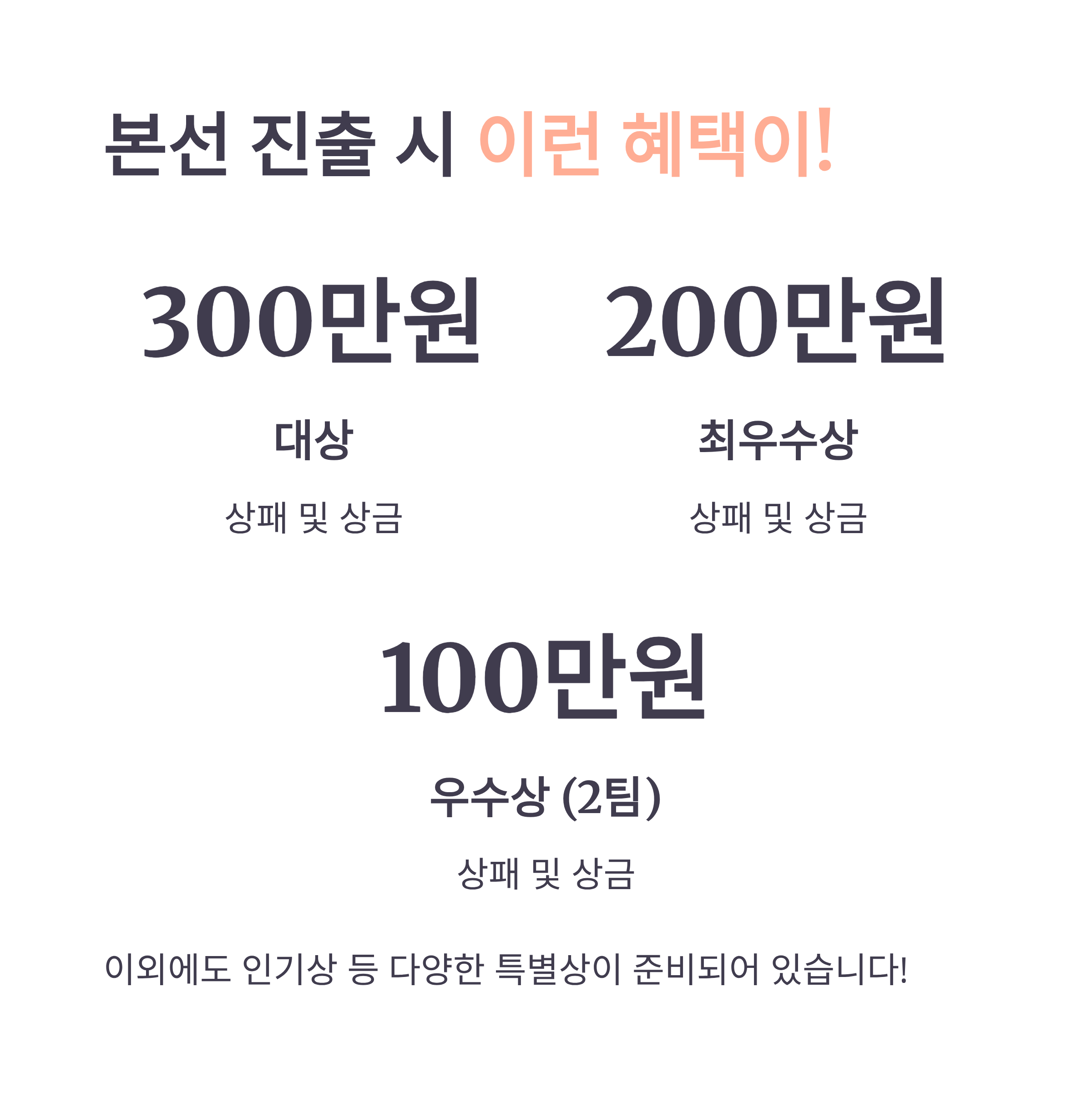 · 은상: 2팀 (각 100만원 + 상패)
