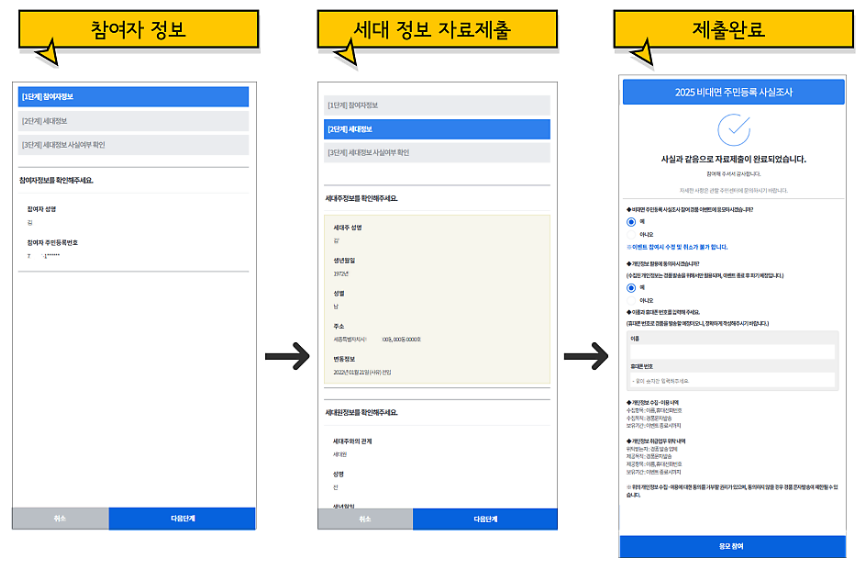 💡 참여자는 본인 명의의 휴대폰과 실제 주민등록상 주소지에서 참여해야 합니다.