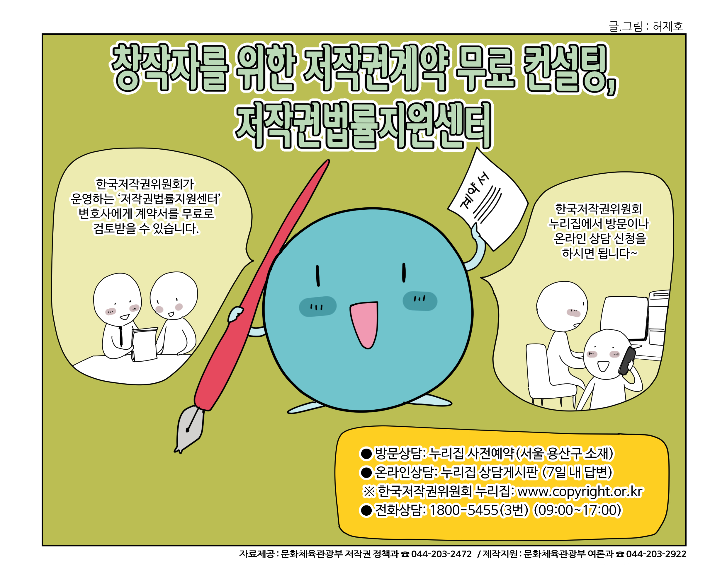 이런 때 창작자들의 든든한 동반자가 되어 줄 곳이 있습니다. 바로 ‘저작권법률지원센터’입니다.