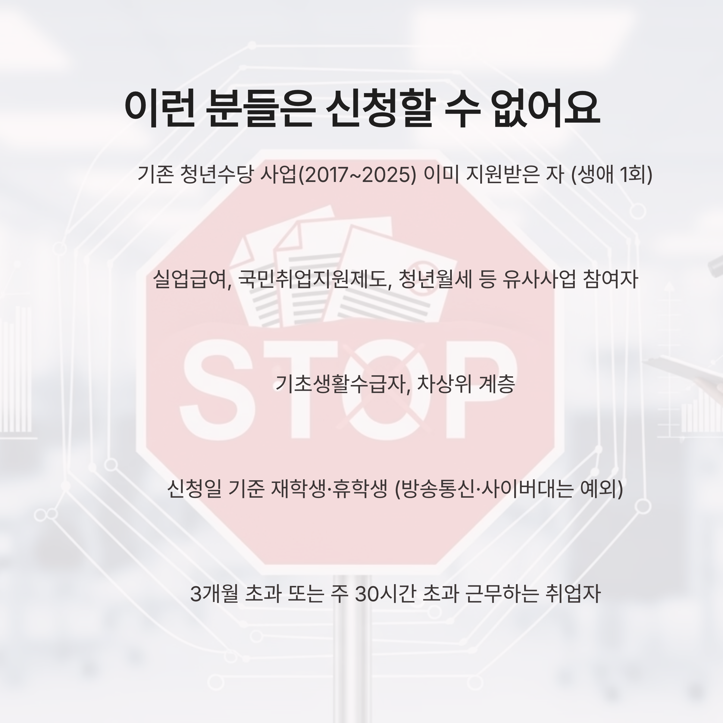 대학생(재학생, 휴학생) 대부분도 대상에서 제외되며, 주 30시간 초과 근무자는 신청할 수 없습니다.