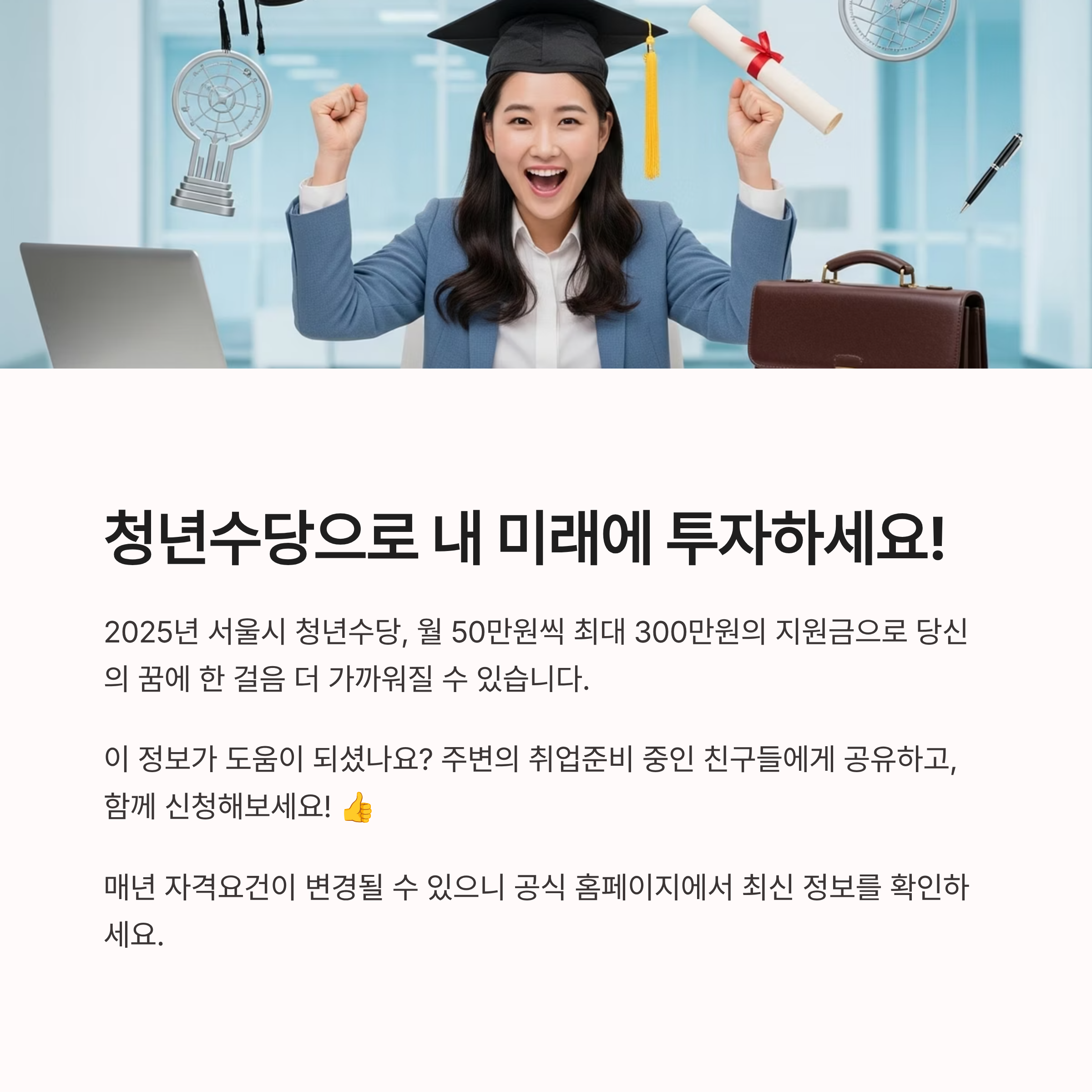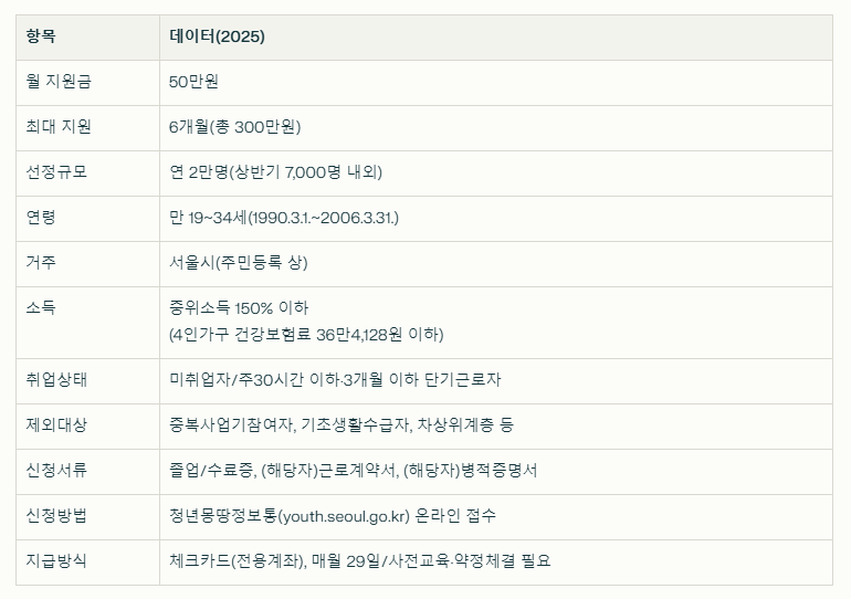 서울시 청년수당은 만 19세에서 34세의 서울 청년에게 월 50만원씩, 최대 6개월간 구직활동을 위한 자금을 지원하는 정책입니다.