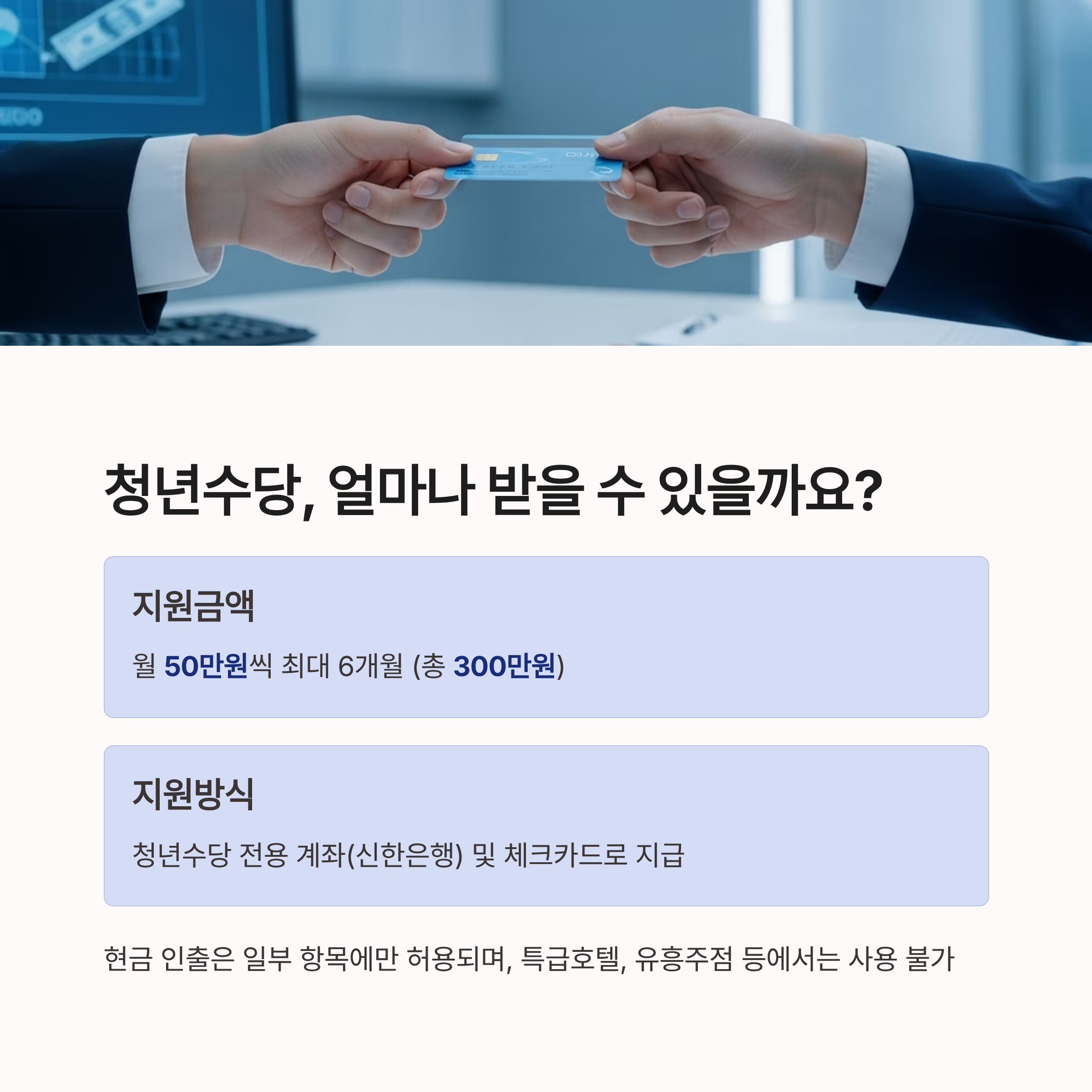 최대 6개월간 월 50만원, 총 300만원을 받을 수 있어 구직과 자기계발에 큰 도움이 됩니다.