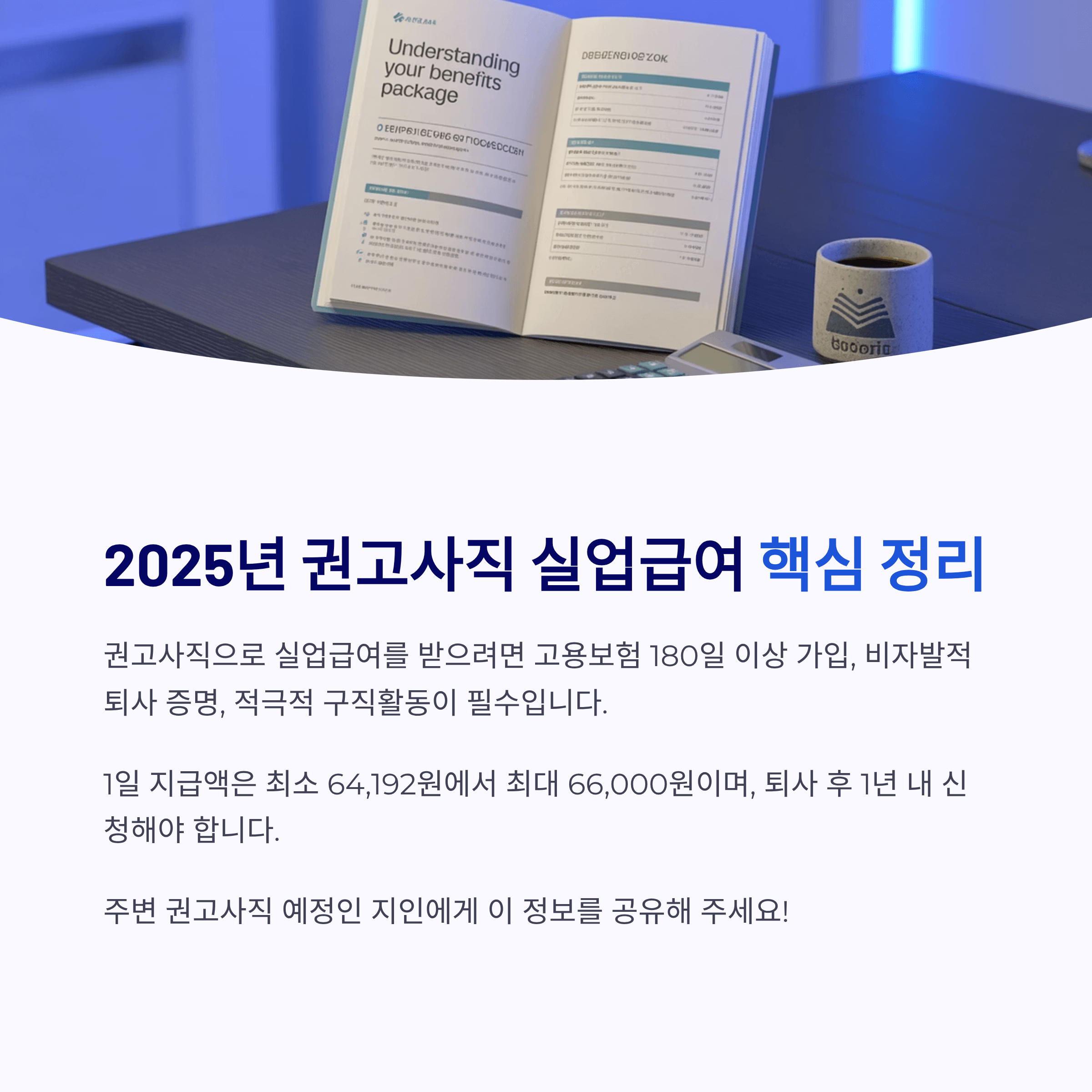 특히 권고사직자는 자격 요건을 충족하기만 하면 수급이 가능하므로, 적극적으로 제도를 활용해 새로운 기회를 준비하시길 바랍니다.